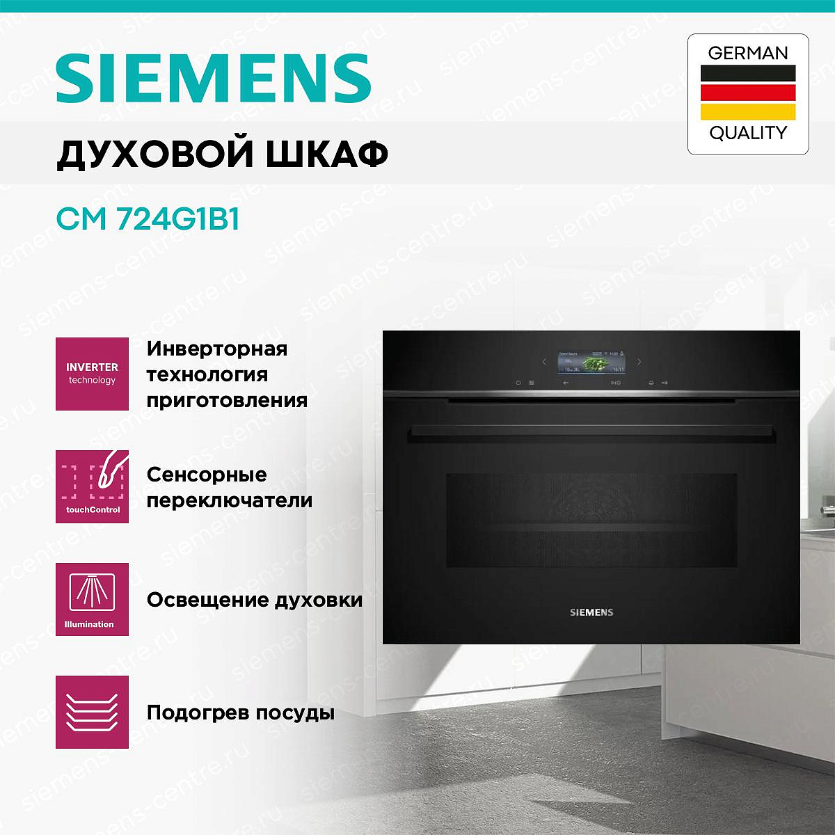 Модель оснащена системой 3D HotAir Plus, которая обеспечивает равномерное распределение тепла внутри печи. Это позволяет готовить блюда одновременно на трех уровнях. Встроенный датчик температуры контролирует процесс приготовления, обеспечивая идеальный результат. При этом модель имеет энергетический класс A, что говорит о ее высокой энергоэффективности. Siemens CM 724G1B1 имеет шесть режимов нагрева, включая конвекцию, гриль, верхний и нижний нагрев. Это позволяет выбрать наиболее подходящий режим для каждого блюда. Особенностью является функция быстрого предварительного нагрева, благодаря которой время приготовления значительно сокращается.