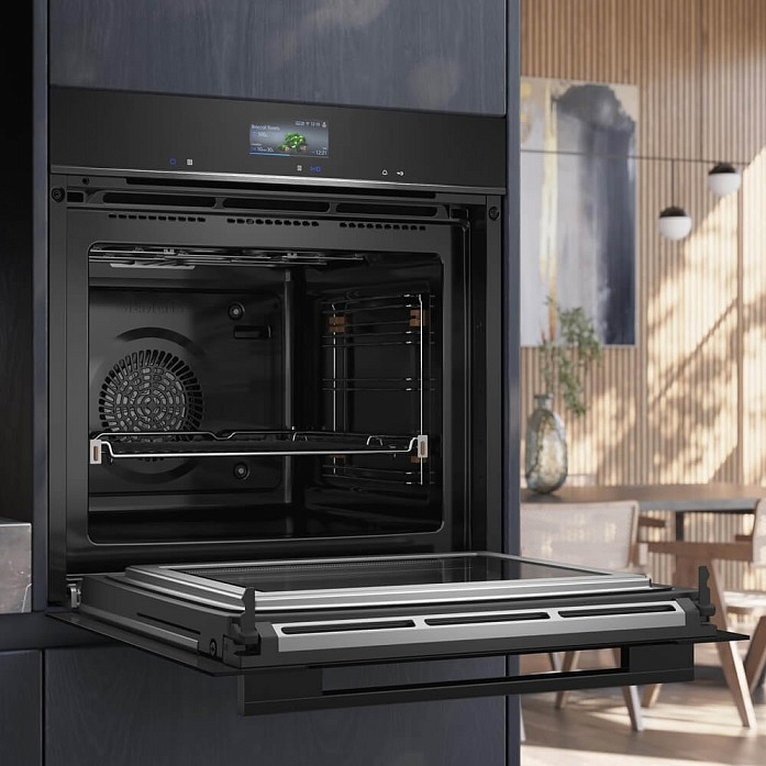 Духовой шкаф Siemens HM776GKB1 — это высококачественное устройство, которое сочетает в себе стильный дизайн и функциональность, делая его идеальным выбором для современной кухни. Эстетический внешний вид шкафа отличается чистыми линиями и минималистичным дизайном, подчеркнутым черным цветом и стеклянной передней панелью. Этот духовой шкаф станет великолепным дополнением к любому интерьеру, придавая ему нотки элегантности и изысканности.