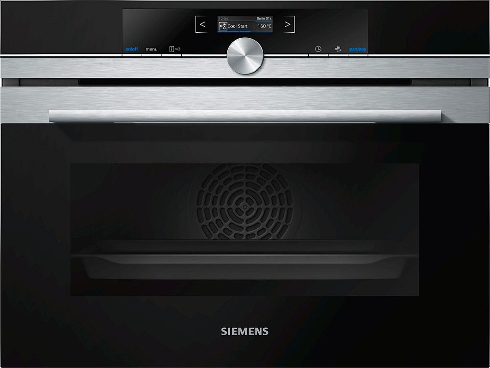 Siemens CB674GBS3 — компактный духовой шкаф с функцией varioSpeed. Модель имеет полностью стеклянную внутренняя поверхность дверцы. Цифровой сенсорный дисплей позволяет легко и быстро подобрать программу для любого типа продуктов. Функция coolStart позволяет начать приготовление продуктов глубокой заморозки без предварительного разогрева.