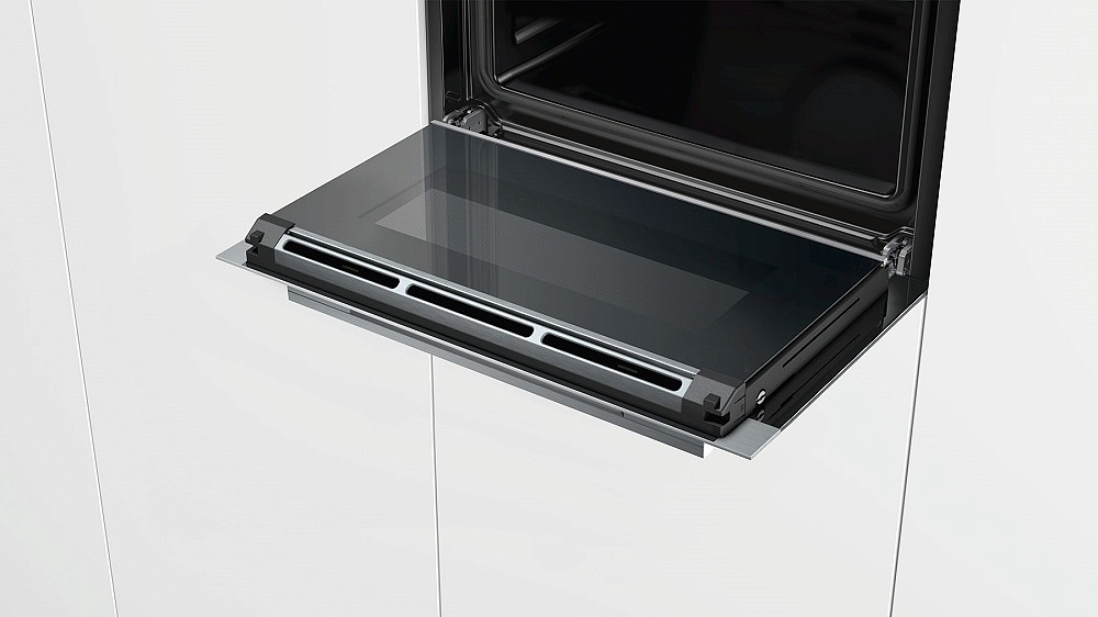 С помощью функции VarioSpeed можно готовить в два раза быстрее — достаточно нажать кнопку. Интегрированный режим СВЧ не только размораживает и разогревает блюда, но и сокращает время приготовления, добавляя микроволны к выбранному режиму нагрева. Это позволяет готовить любые блюда в духовом шкафу быстрее, сохраняя при этом полноту вкуса и аромата. Экономия времени и высокое качество приготовления гарантированы.