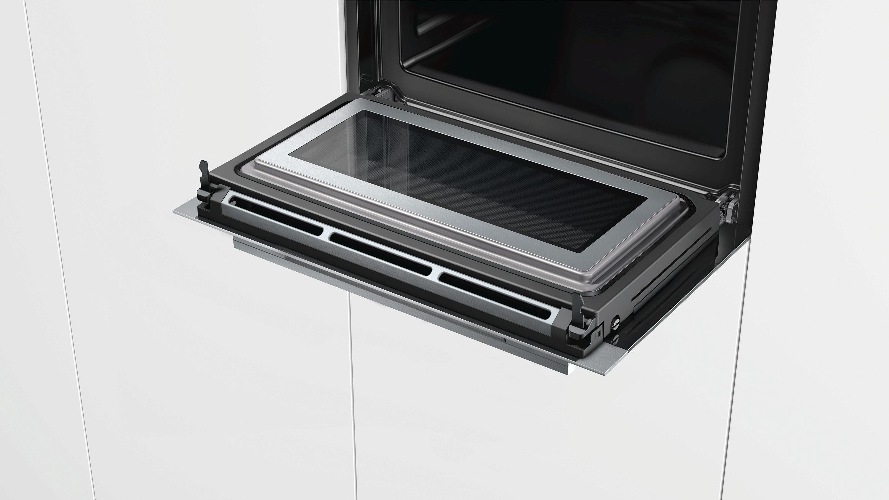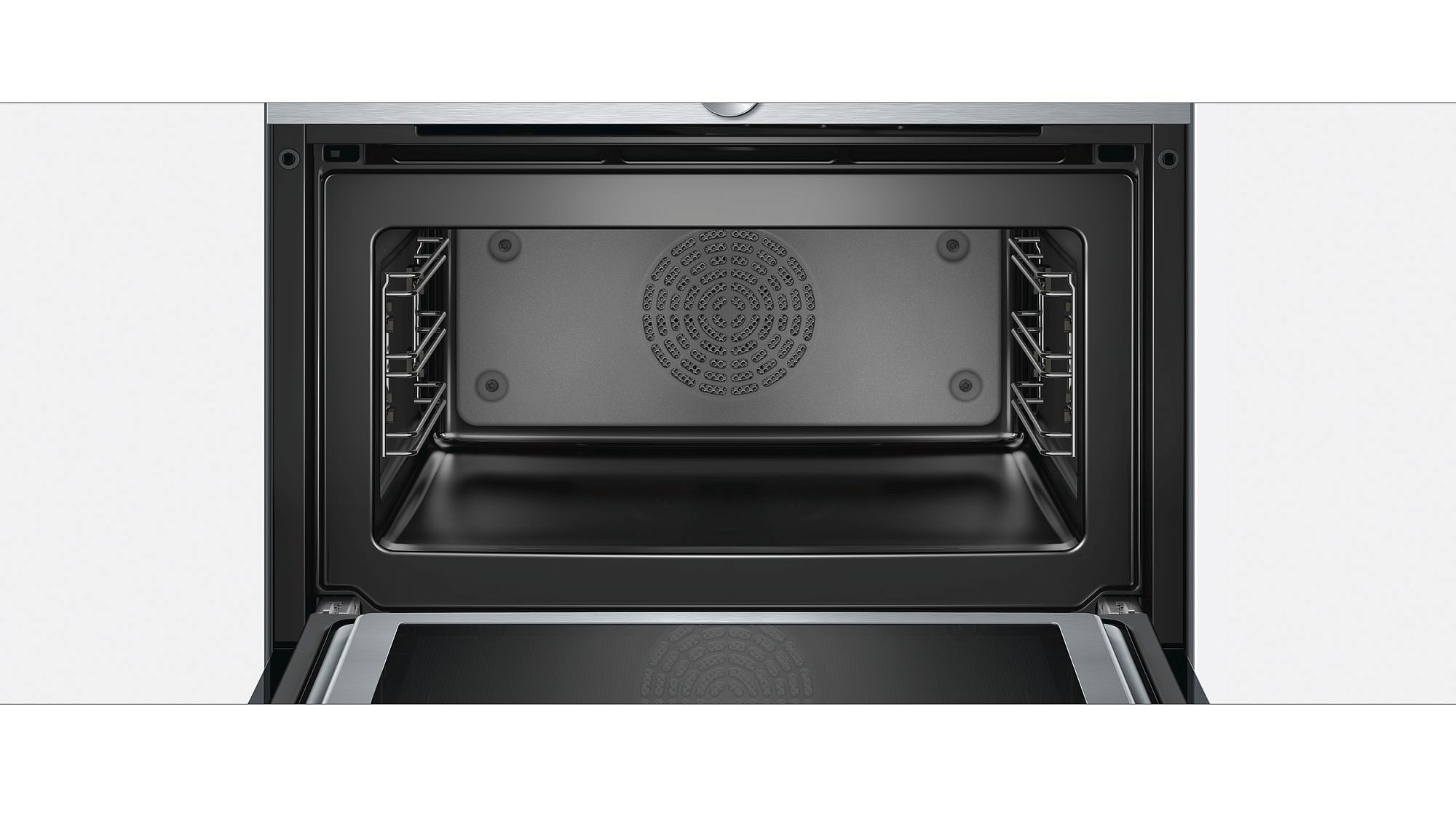 Духовой шкаф Siemens CM 636GBS1 — дизайн и функциональность. Данная модель гармонично сочетается с другой бытовой техникой серии IQ 700. Цветной сенсорный дисплей обеспечивает наглядное отображение информации и удобную навигацию по меню. Конструкция данной модели предусматривает комбинирование микроволн с режимами нагрева, что позволяет ускорить приготовление. С помощью таймера можно запрограммировать время окончания работы, а светодиодная подсветка гарантирует оптимальный обзор внутреннего пространства.