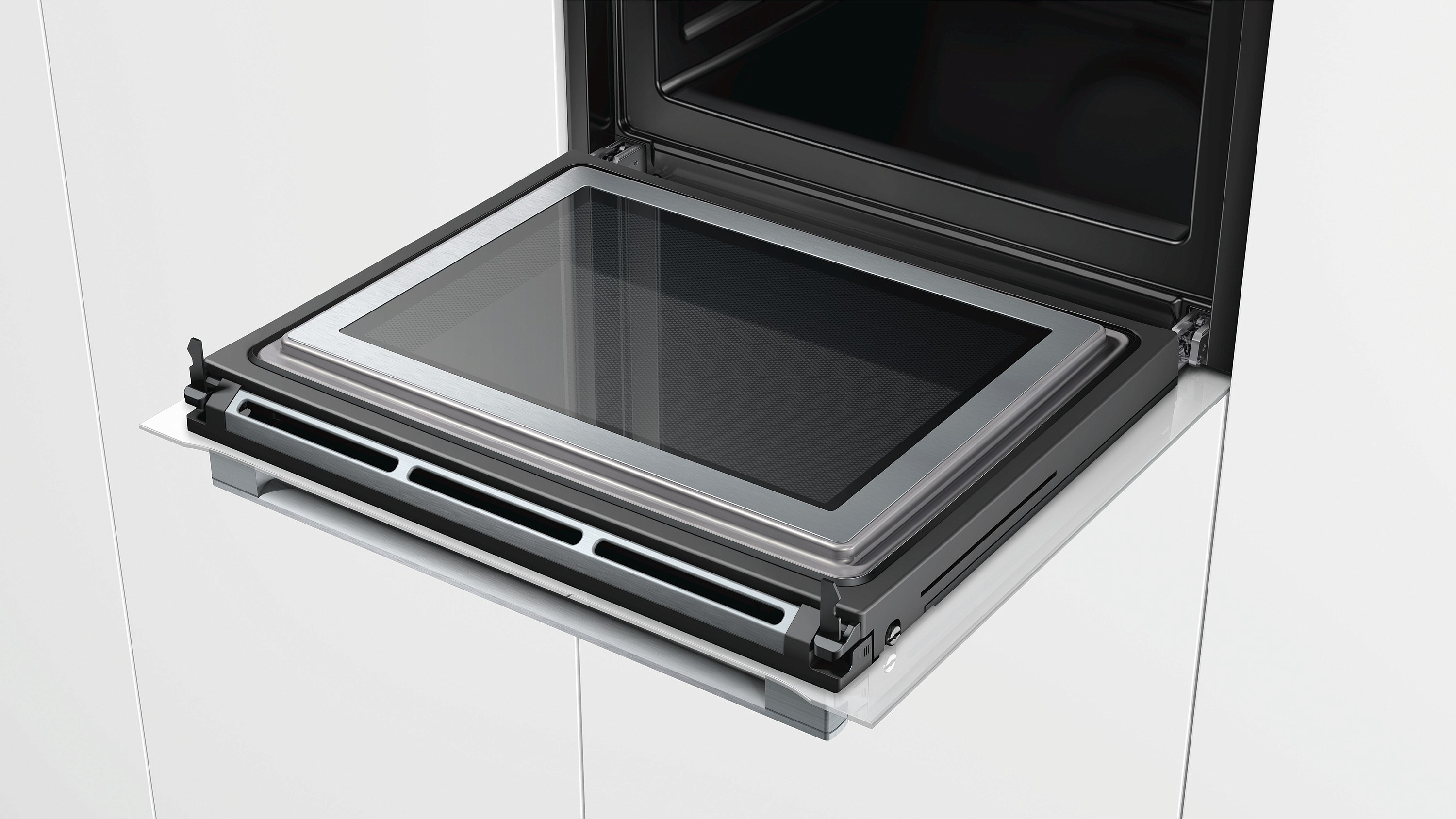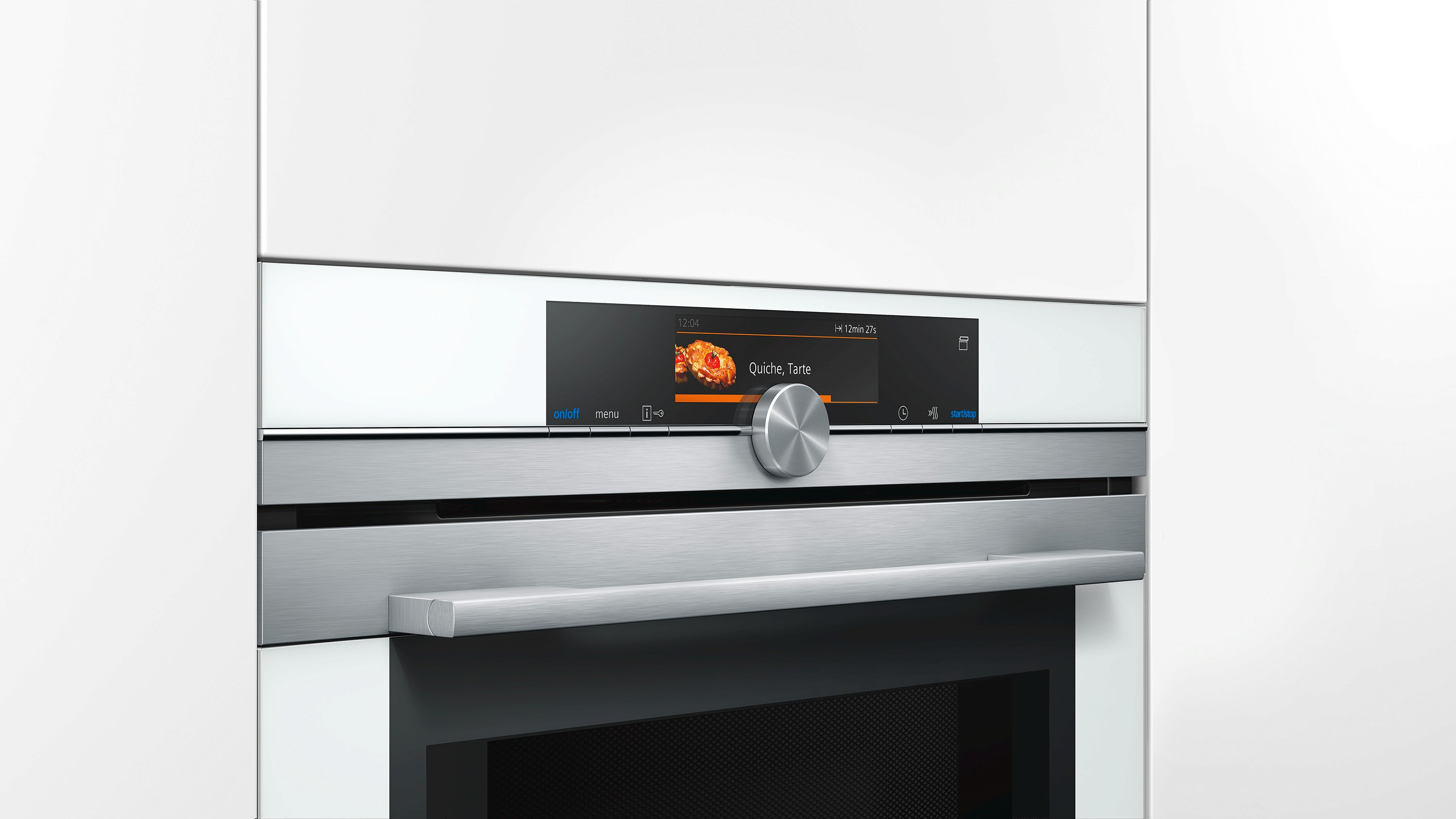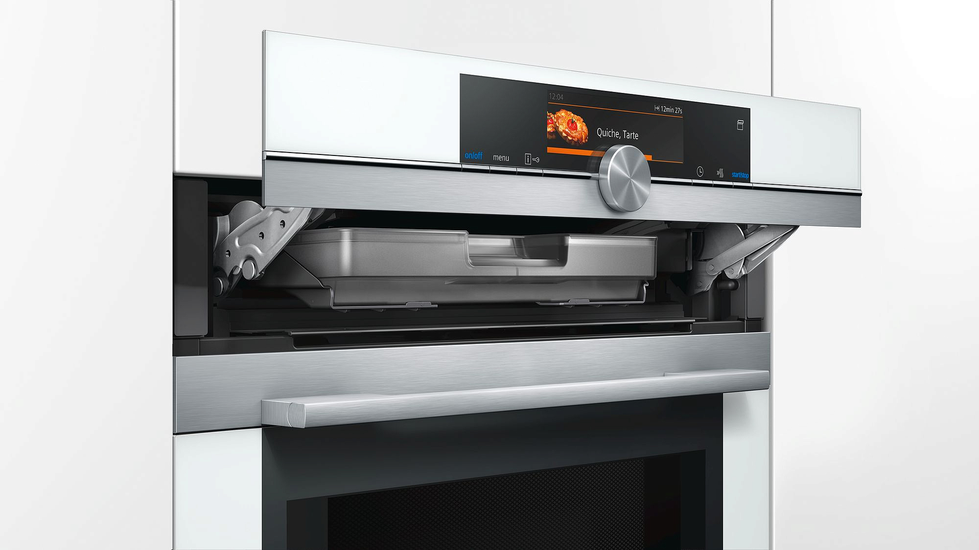 С помощью трехточечного термощупа roastingSensor Plus можно получить блюдо нужной степени прожарки. Дверца духового шкафа открывается и закрывается плавно за счет технологии softMove, а телескопические направляющие гарантируют устойчивое положение противней. Меню cookControl Plus с цветной анимацией и многофункциональные часы с таймером повышают комфорт использования.