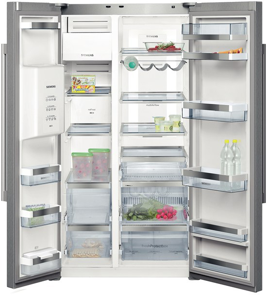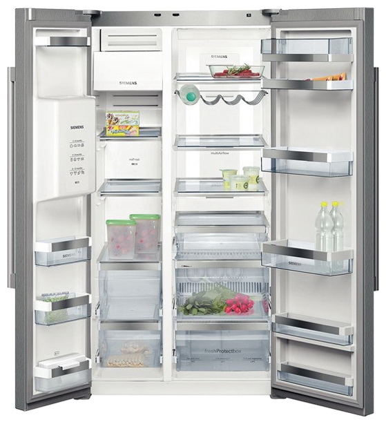 Отдельно стоящий холодильник с морозильником с расположением морозильной камеры Side by Side. Модель Siemens KA62DP91 имеет красивый серебристый цвет и станет не только надежным хранилищем для продуктов, но и стильным дополнение к дизайну кухни. Размораживание No Frost делает уход за холодильником очень простым. Предусмотрены возможности быстрого охлаждения и заморозки. Есть режим «Отпуск». Сигнализация сообщит о повышении температуры и оставленной незакрытой дверце. Общий объем холодильника составляет 526 л. В модели также присутствует защита от детей. Генератор льда и система подачи охлажденной воды — также немаловажные плюсы данной модели.