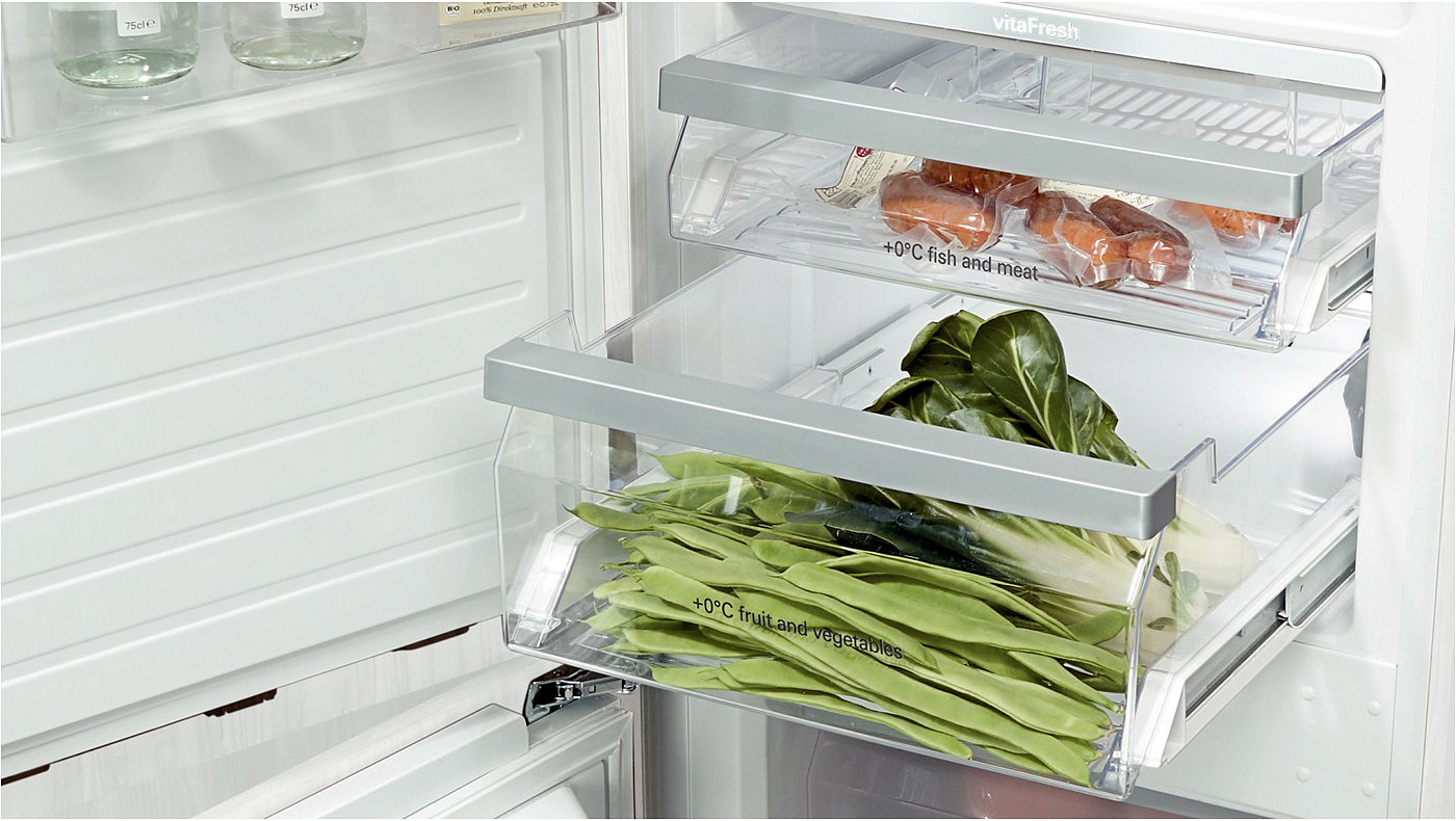 Функциональный и эстетичный холодильник оснащен отделением hyperFresh premium с двумя зонами свежести — 25 л «влажная» и 32 л «сухая», что позволяет сохранить свежесть и полезные свойства продуктов в три раза дольше, по сравнению с обычными контейнерами. Угольный фильтр airFreshFilter исключает вероятность взаимопроникновения запахов в зоне свежести, что повышает комфорт использования.