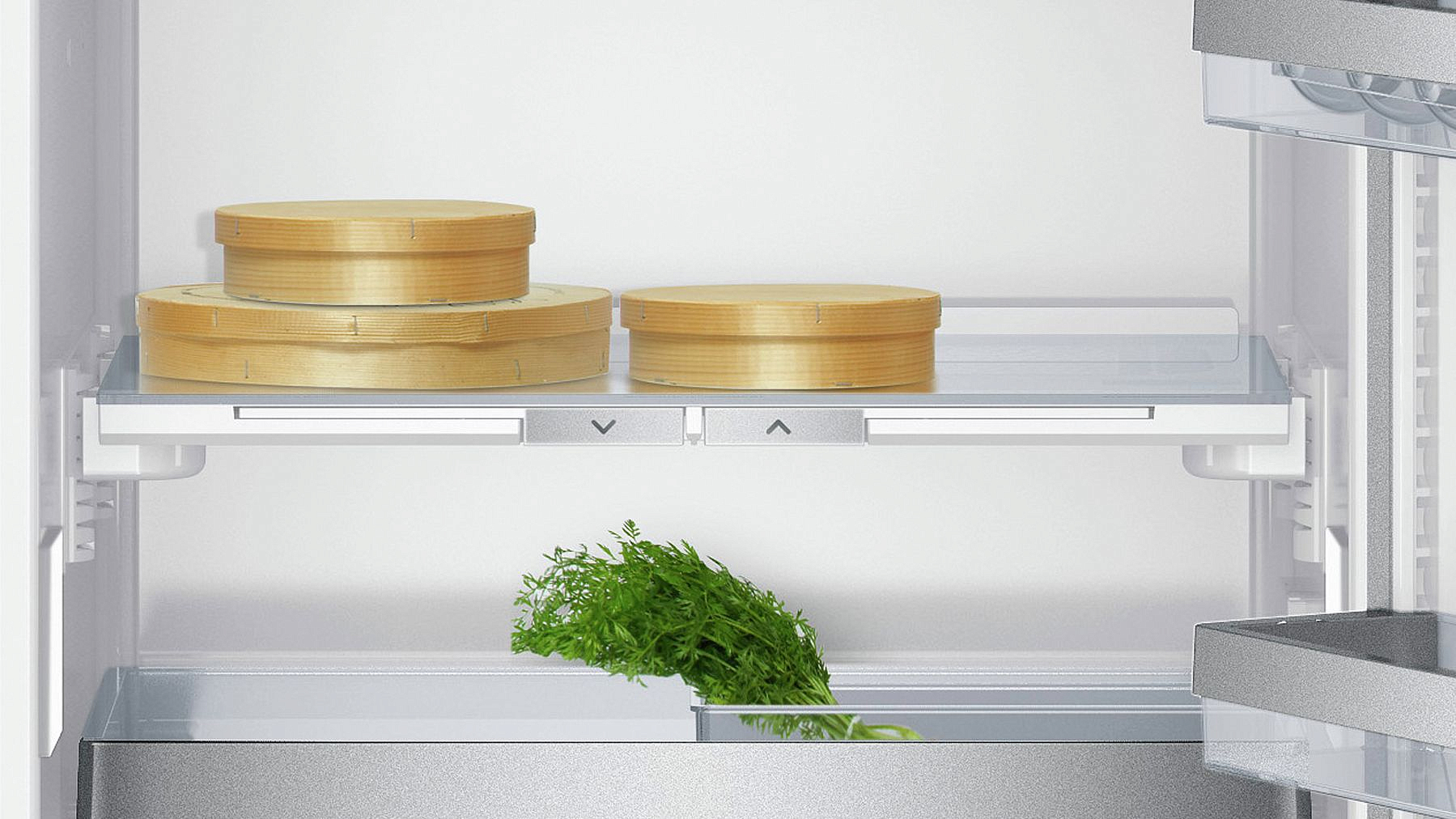 Новая схема встраивания coolConcept гарантирует рациональное использование пространства, удобство монтажа и долговечность эксплуатации. Полки и дверные контейнеры easyLift легко перемещаются по высоте, а светодиодное освещение обеспечивает хороший обзор холодильного отделения и зоны свежести, что повышает комфорт использования.