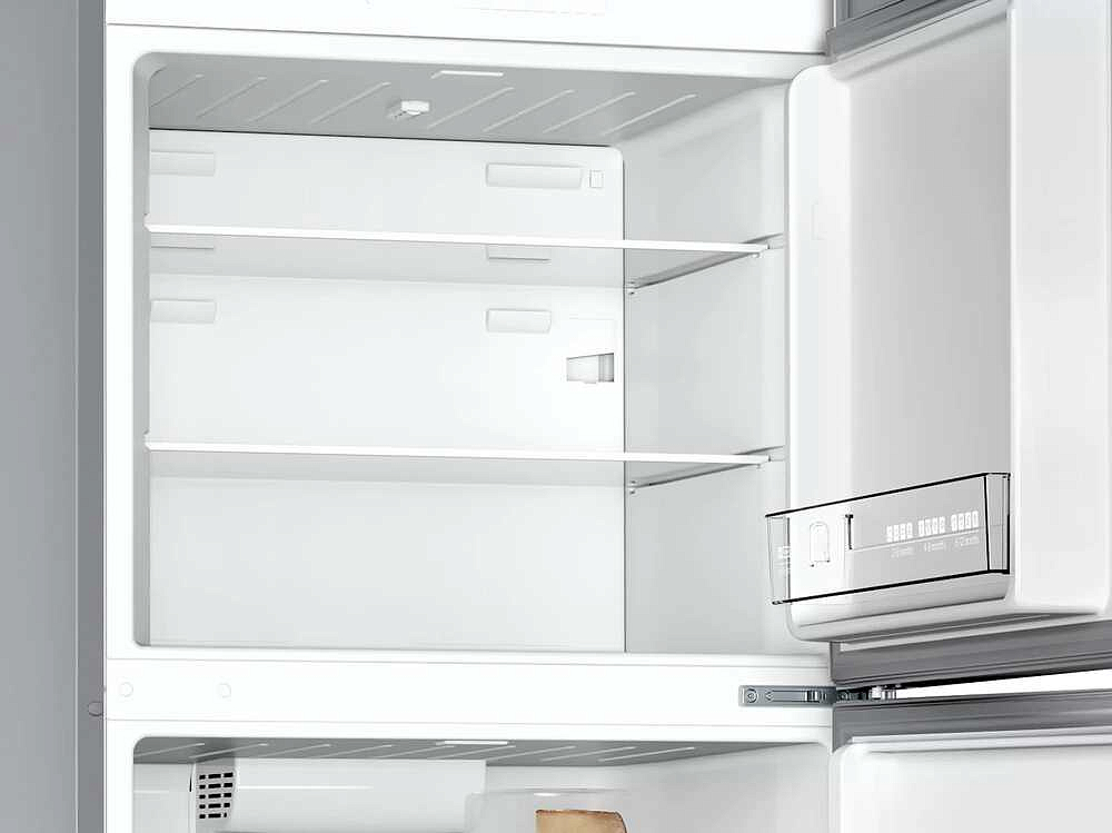 Устройство оснащено системой автоматического оттаивания и размораживания, что значительно облегчает его эксплуатацию. Внутри находятся четыре полки из закаленного стекла, три из которых можно регулировать по высоте. Также есть специальная полка для бутылок и зона свежести типа hyperFresh, где поддерживается оптимальная температура и уровень влажности для максимального сохранения свежести продуктов.