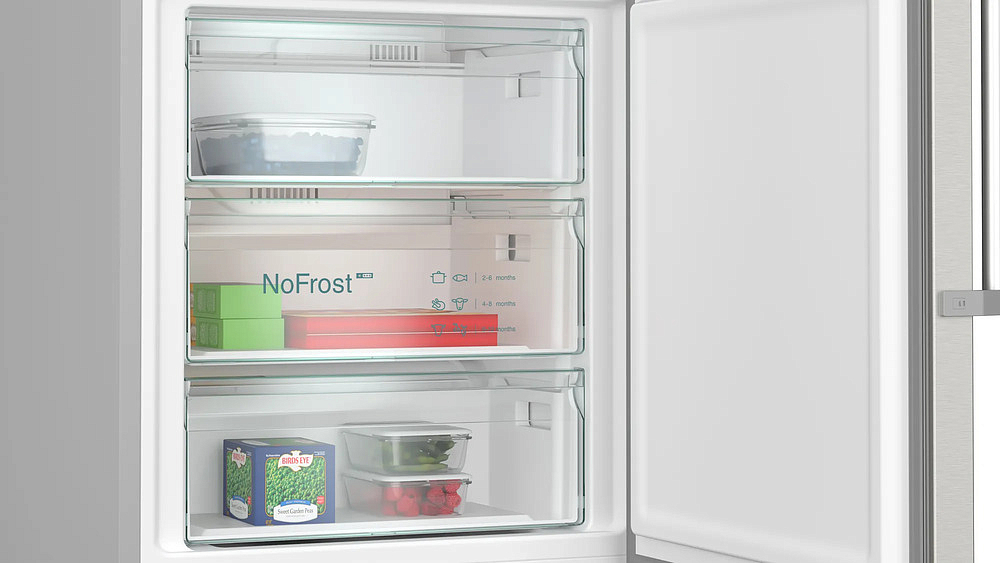 Оснащенный электронным управлением и LCD дисплеем, это устройство обеспечивает простоту и удобство использования. Система NoFrost предотвращает образование инея, что избавляет от необходимости размораживать холодильник. Это значительно экономит время и энергию пользователя. Светодиодное освещение обеспечивает яркое и равномерное освещение, что упрощает поиск продуктов.