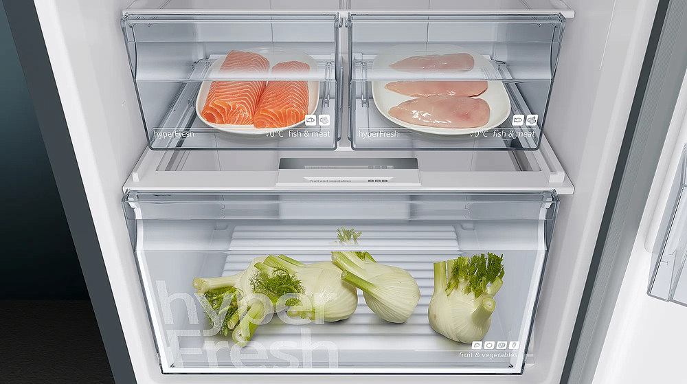 Морозильная камера имеет объем 108 литров и оснащена функцией автоматического размораживания. Здесь можно заморозить до 4 кг продуктов в сутки. Также есть режим суперзамораживания для быстрой заморозки большого количества продуктов. В морозильной камере предусмотрены 3 ящика, включая большой ящик bigBox для хранения крупногабаритных продуктов.
