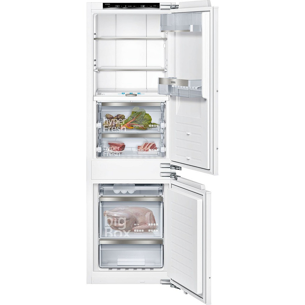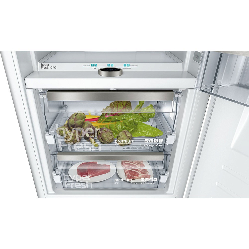 Siemens KI86FHD20R — встраиваемый холодильник с функцией VitaControl, которая дает возможность поддерживать постоянный уровень температуры. Шесть полок позволяют разместить различные продукты в дверце. Для лучшей сохранности продуктов предусмотрена сигнализация, которая срабатывает при долгом нахождении двери в открытом положении. Доводчик позволяет плавно закрывать холодильник.