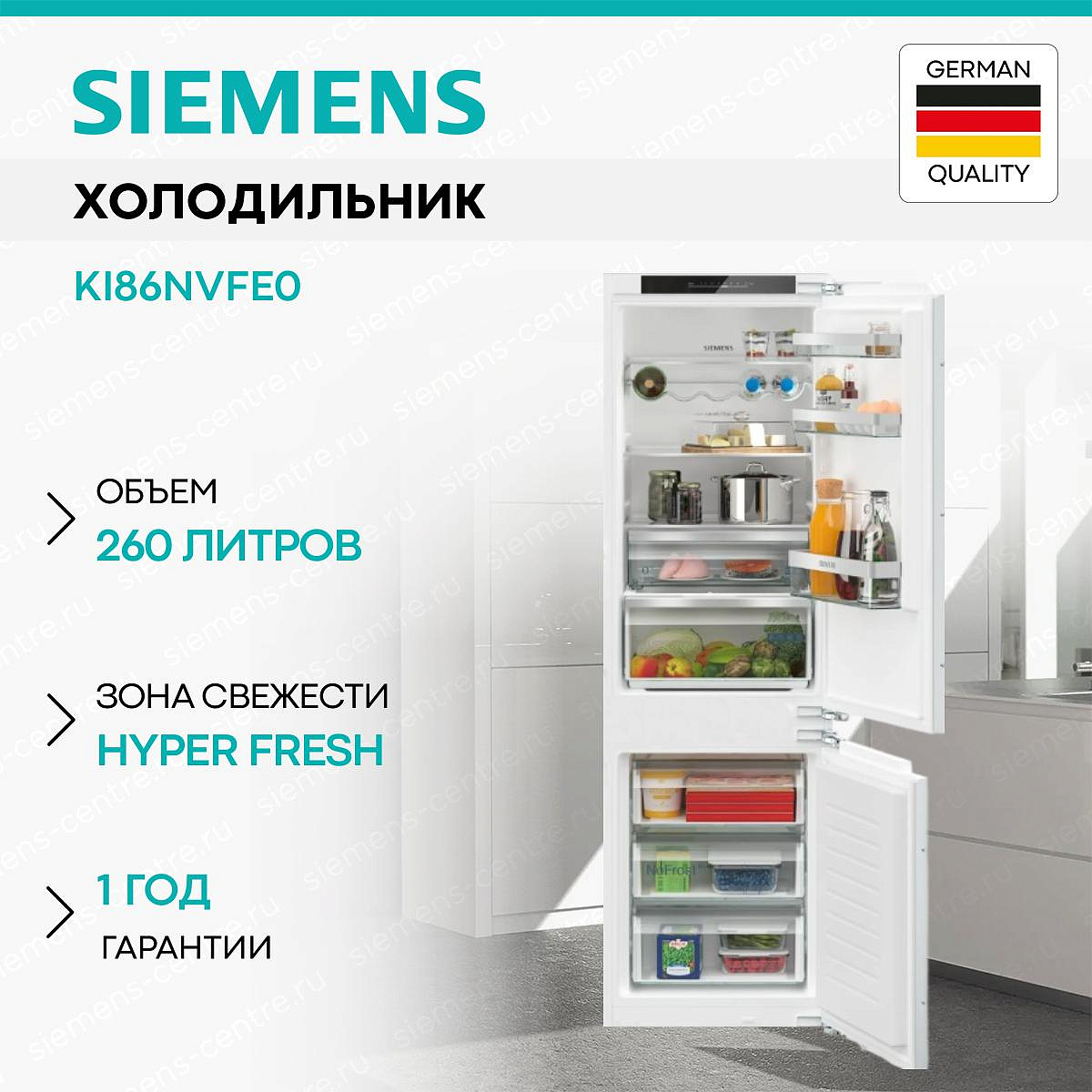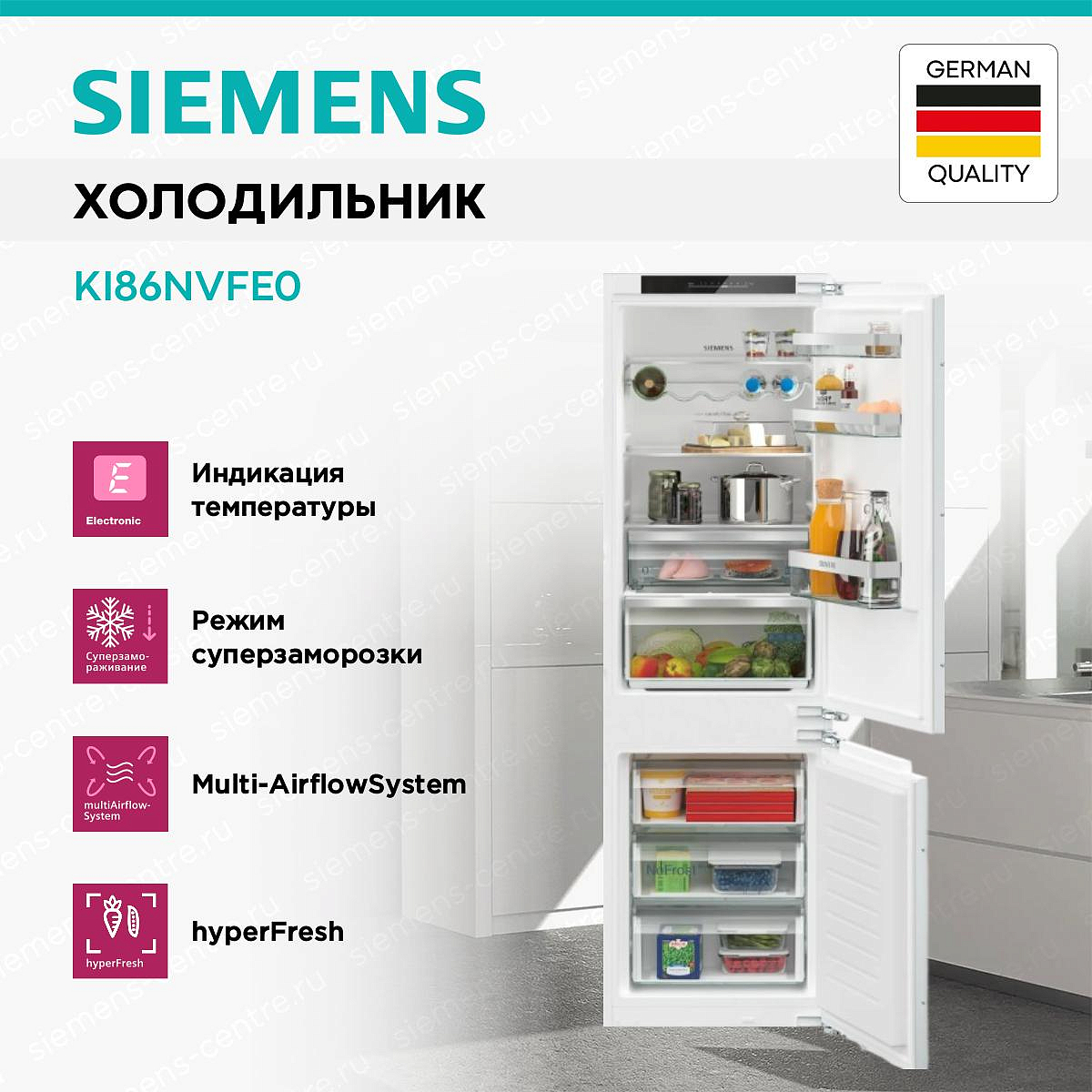 Встраиваемый двухкамерный холодильник Siemens KI86NVFE0, произведенный в Германии, сочетает в себе превосходный дизайн и инновационные технологии. Благодаря своему элегантному белому цвету и современному дизайну, он станет изысканным дополнением к любому интерьеру кухни. Эта модель оснащена электронным управлением с LED дисплеем, что обеспечивает удобство и простоту использования.