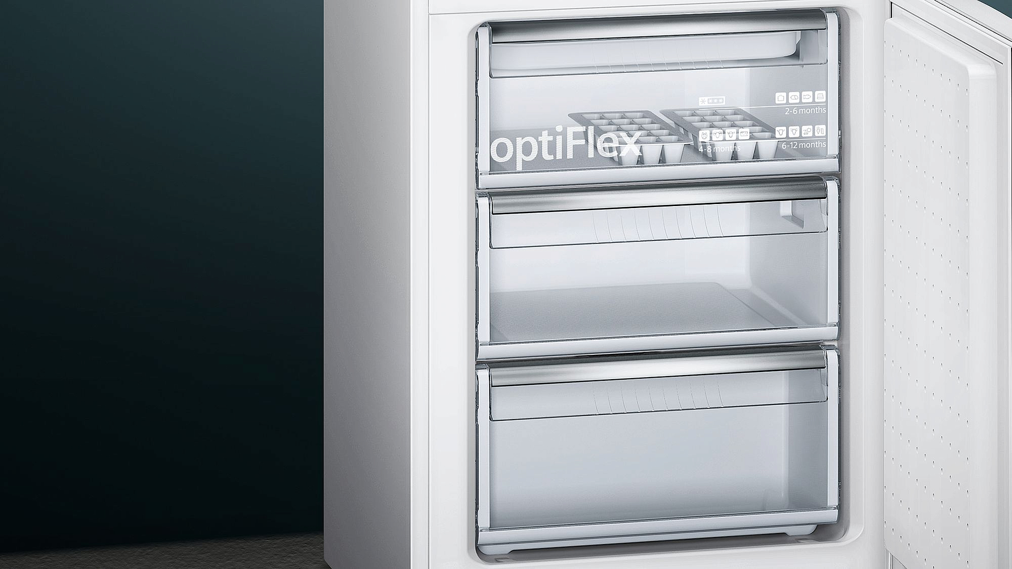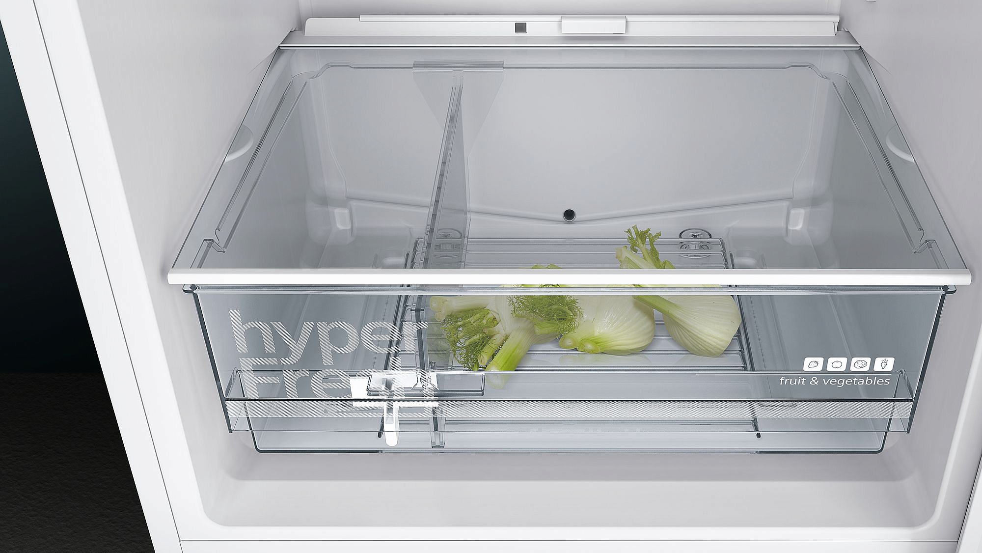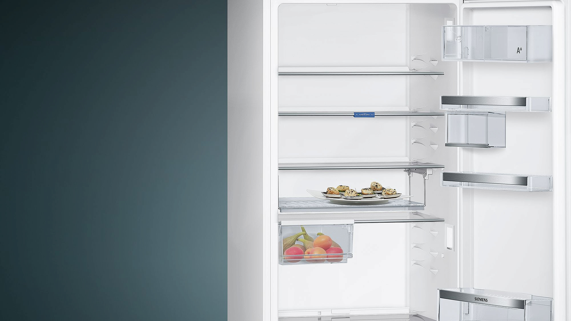 Холодильник Siemens KG39EAI2OR классического белого цвета оснащен электронной панелью и дисплеем, которые помогают удобно управлять режимами работы прибора. Полки из небьющегося стекла позволяют безопасно использовать пространство холодильника. Зона свежести vitaFresh обеспечивает высокую степень сохранности продуктов.