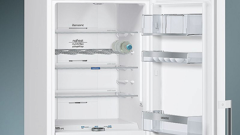 Двухкамерный холодильник Siemens KG39FHW3OR белого цвета прекрасно сочетается с любым кухонным интерьером. Модель можно установить непосредственно вплотную к стене, без зазоров сзади и по бокам, так как дверь открывается на 90 градусов, при этом все полки и ящики выдвигаются полностью. Система Multi Airflow обеспечивает равномерное распределение воздуха в холодильной камере: теплые продукты охлаждаются быстрее, а их свежесть и качество сохраняются лучше. Долговечные светодиодные лампы расположены в боковых стенках или сверху и равномерно освещают внутреннее пространство прибора.