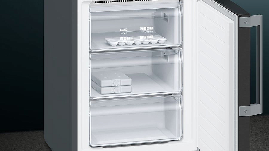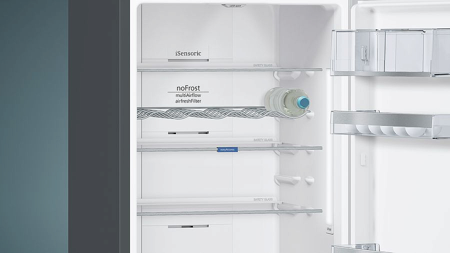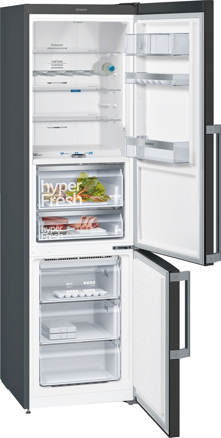 Siemens KG39FPX3O — двухкамерный холодильник цвета «черная нержавеющая сталь». Модель прекрасно сочетается с любым современным кухонным интерьером. Система Multi Airflow обеспечивает равномерное распределение воздуха в холодильной камере: теплые продукты охлаждаются быстрее, а их свежесть и качество сохраняются лучше. Фильтр airFresh абсорбирует и нейтрализует неприятные запахи и бактерии в течение всего срока службы прибора.