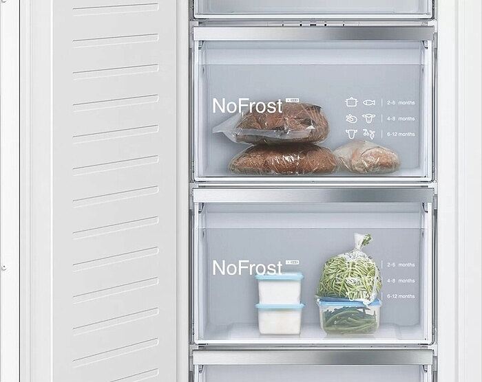 Встраиваемая морозильная камера Siemens GI81NAE30M - отличный выбор и будет достойной покупкой. оснащена системой varioZone вы можете выдвигать ящики, и регулировать их под объем ваших продуктов. Функция freshSense измеряет температуру снаружи устройства и из этих показателей поддерживает температуру внутри. Технология NoFrost сохраняет воздух сухим и предотвращает образование льда на стенках прибора.