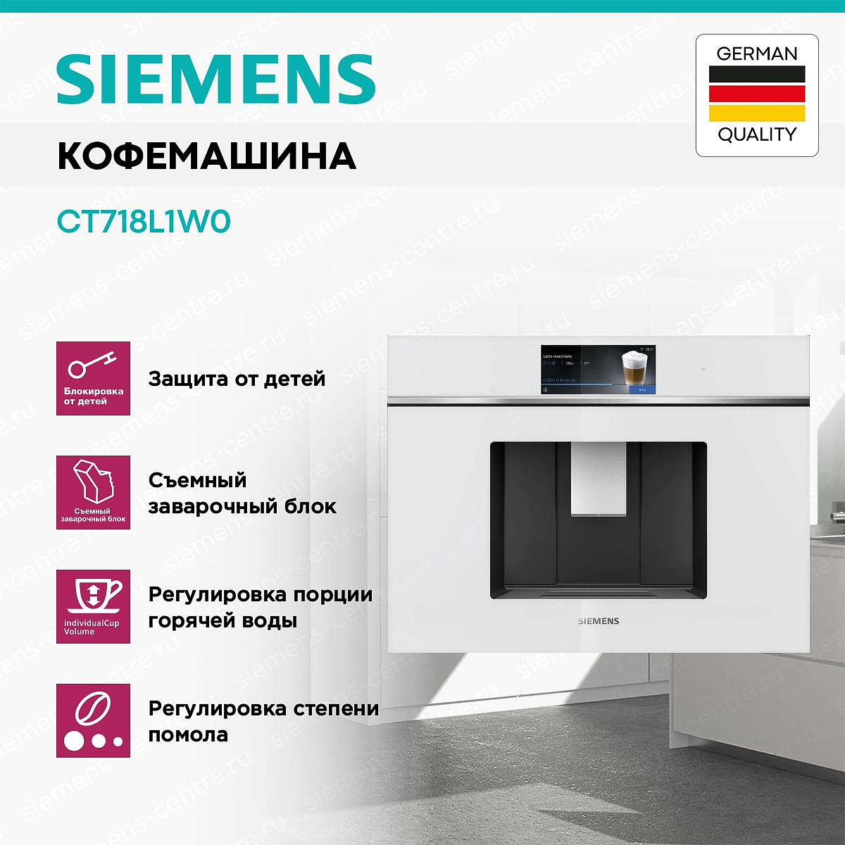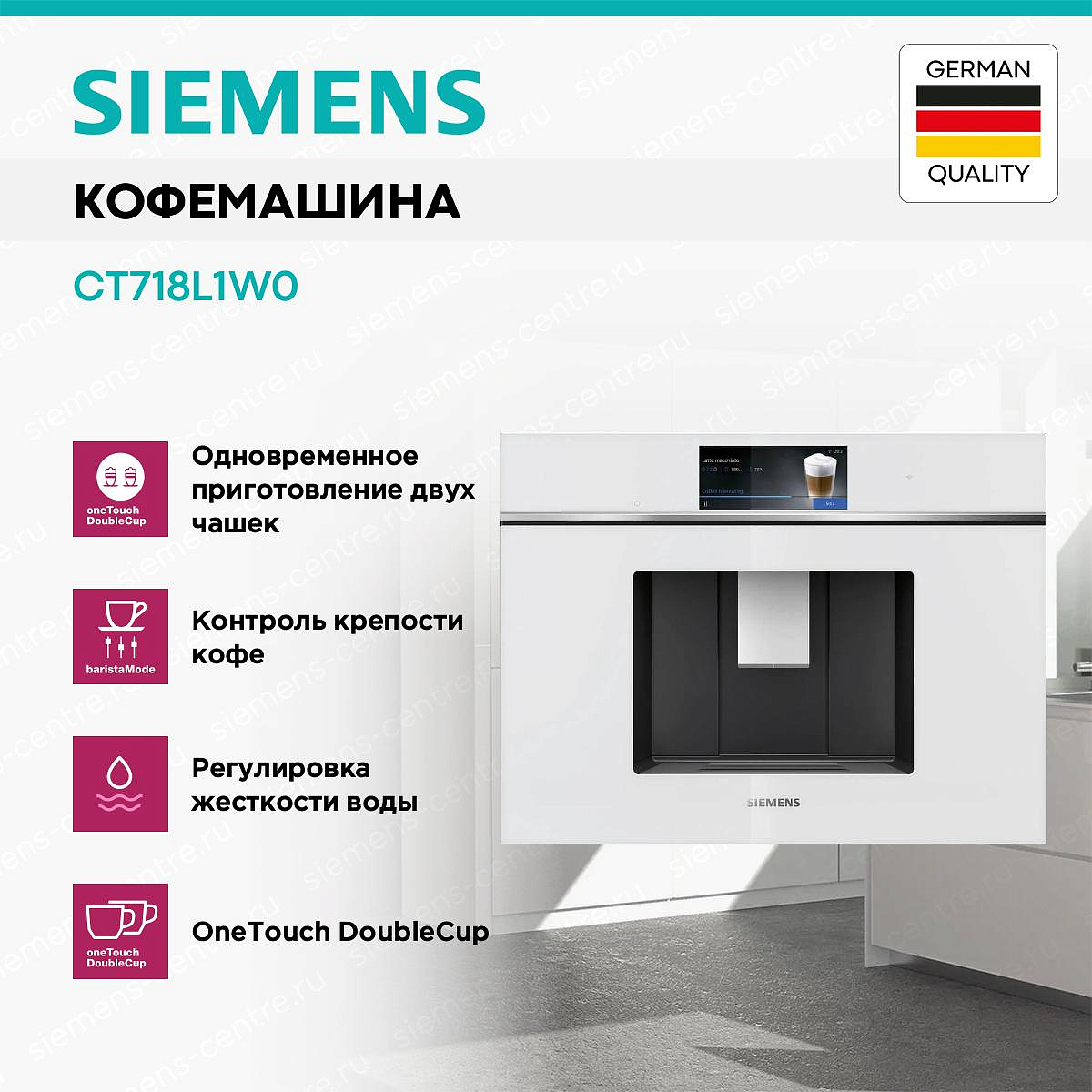 Кофемашина Siemens CT718L1W0 оснащена функцией Home connect, она позволяет управлять устройством с помощью вашего смартфона удаленно. Вы можете выставить таймер на отключение, индикация подскажет вам когда нужно произвести чистку. Имеется возможно приготовить две чашки кофе одновременно.