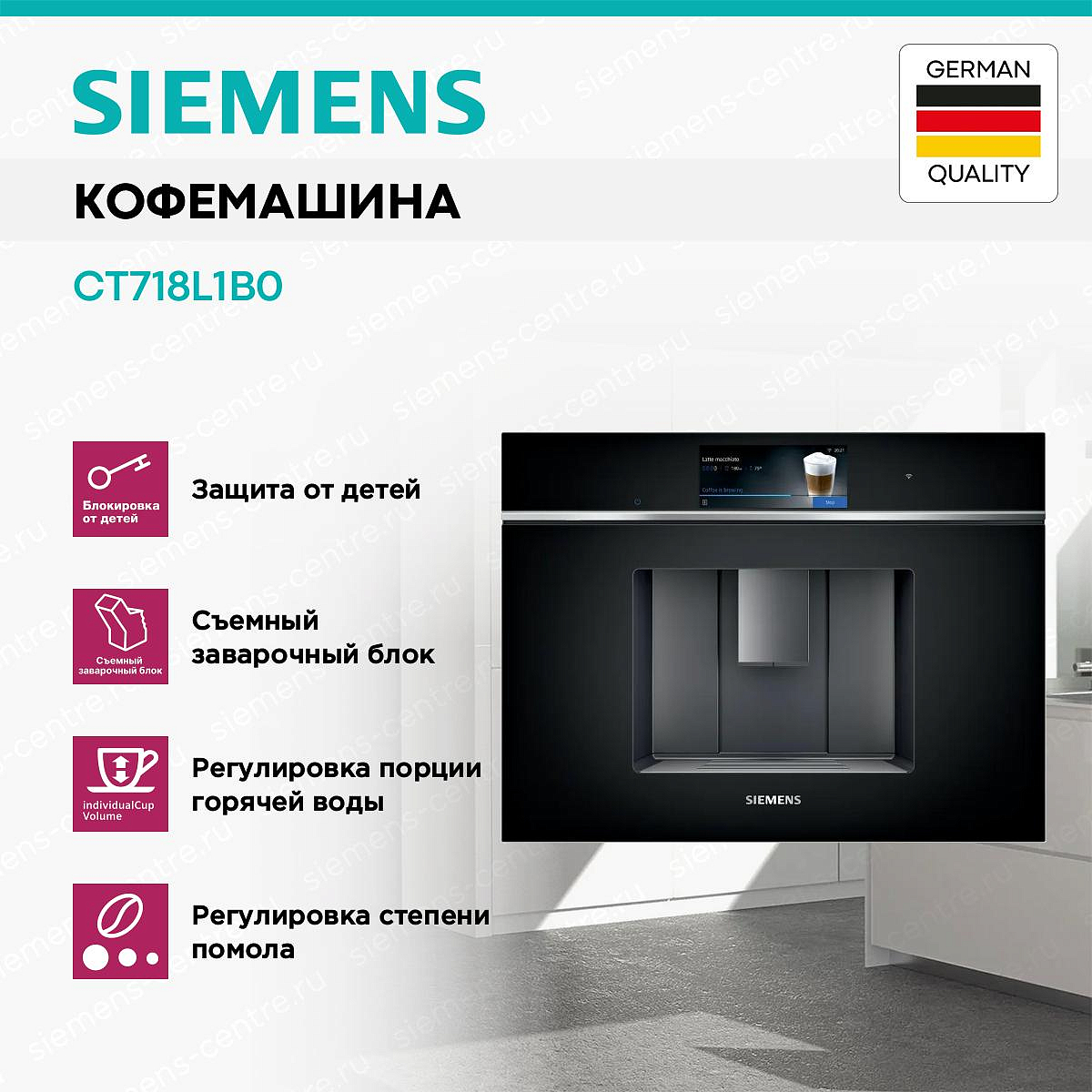 Сервисные центры Siemens есть во всех крупных городах России. Адреса можно уточнить на нашем сайте в разделе «Гарантия», либо на официальном сайте, либо по телефону представительства в Москве. В сервисном центре можно отремонтировать бытовую технику, провести сервисное обслуживание, приобрести аксессуары. На приобретенные в нашем онлайн-магазине товары предоставляется официальная гарантия производителя — 1 год гарантии + 1 год сервисного обслуживания. Обратите внимание, что гарантия действует только на приборы, которые использовались в домашних условиях без нарушения условий эксплуатации.