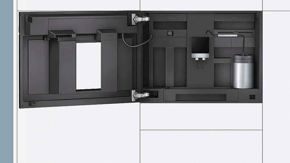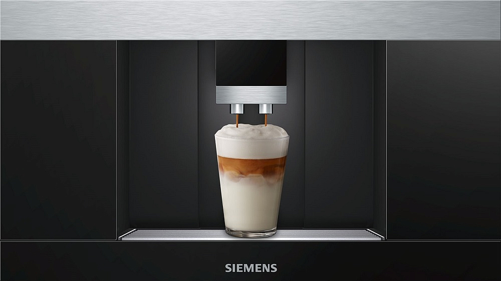 Siemens CT636LES6 — кофемашина с элегантным дизайном и функцией Home Connect. Модель оснащена технологией OneTouch DoubleCup, которая обеспечивает одновременное приготовление напитка с молоком для двух чашек. С помощью цветного TFT-дисплея и интерактивного меню можно легко и точно выбрать параметры работы техники. Инновационная система нагрева воды SensoFlowSystem — всегда правильная, оптимальная температура заваривания кофе.