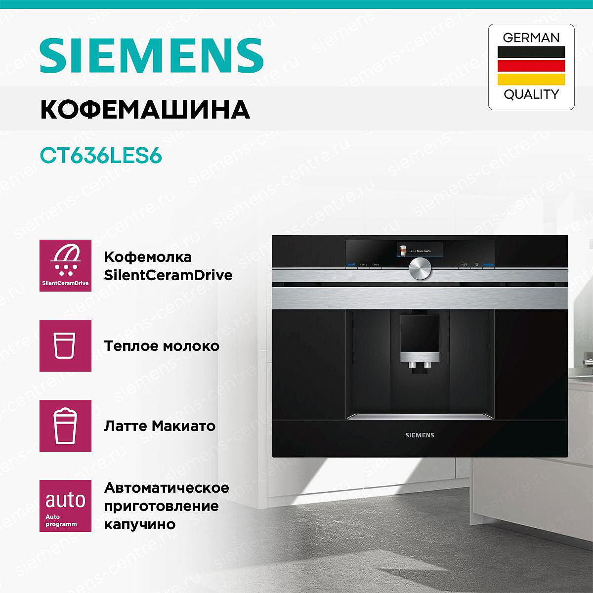 Сервисные центры Siemens есть во всех крупных городах России. Адреса можно уточнить на нашем сайте в разделе «Гарантия», либо на официальном сайте, либо по телефону представительства в Москве. В сервисном центре можно отремонтировать бытовую технику, провести сервисное обслуживание, приобрести аксессуары. На приобретенные в нашем онлайн-магазине товары предоставляется официальная гарантия производителя — 1 год гарантии + 1 год сервисного обслуживания. Обратите внимание, что гарантия действует только на приборы, которые использовались в домашних условиях без нарушения условий эксплуатации.