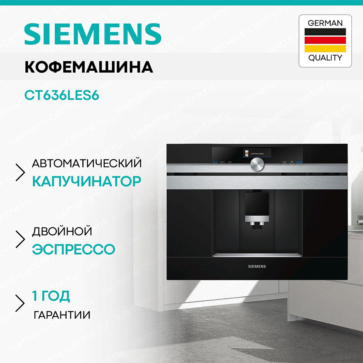 На всю бытовую технику Siemens, представленную в нашем интернет-магазине, действует официальная гарантия — 1 год со дня покупки. В течение первого года проводится гарантийное обслуживание и ремонт, во второй года — бесплатное сервисное обслуживание. Если срок гарантии не истек, неисправность будет устранена в сервисном центре. Если гарантия закончилась, можно отремонтировать технику у наших партнеров. Аксессуары и запасные части, приобретаемые отдельно и не включенные в комплектацию прибора, не покрываются гарантией. Ремонт по гарантии не влечет расширения или продления гарантийного срока.