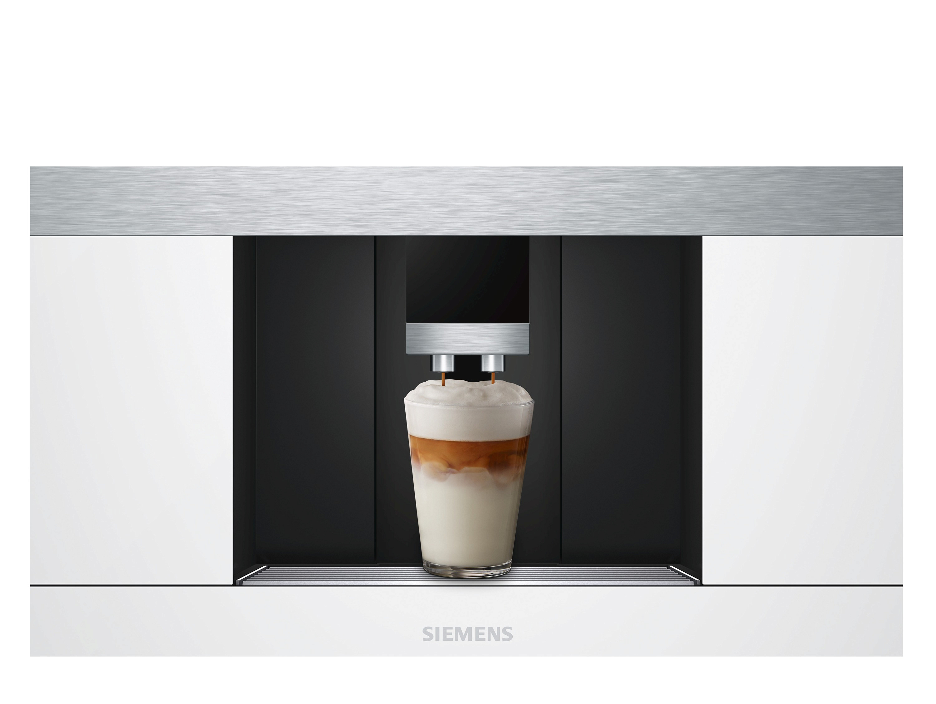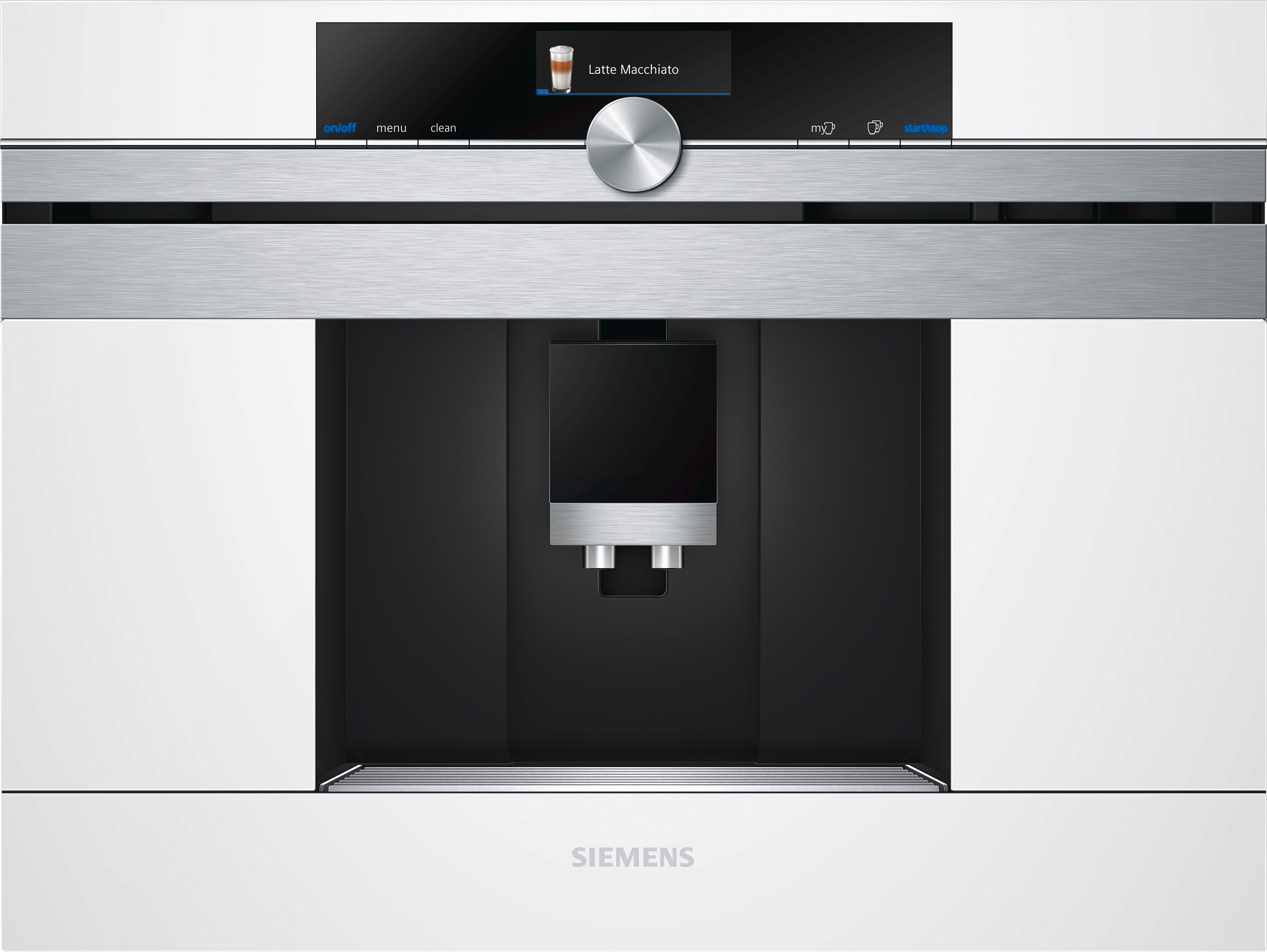 Кофемашина SIEMENS CT636LEW1 выполнена в белом цвете с элементами на корпусе в цвете «Нержавеющая сталь»