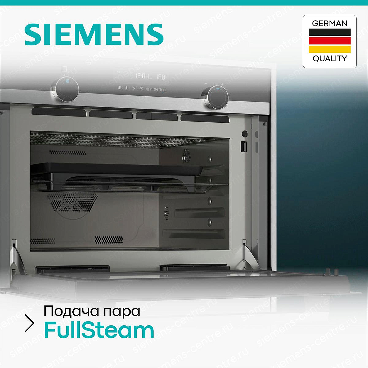 Встраиваемая микроволновая печь Siemens CP565AGS0 с функцией горячего воздуха и пара отличается элегантным дизайном и практичностью. Поворотный переключатель Light Control подсвечивает выбранный символ голубым цветом, превращая управление прибором в понятный и увлекательный процесс. Быстрый разогрев позволяет достичь необходимой температуры для выпечки за максимально короткое время.