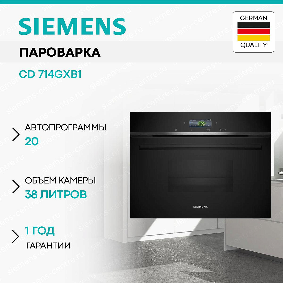 На всю бытовую технику Siemens, представленную в нашем интернет-магазине, действует официальная гарантия — 1 год со дня покупки. В течение первого года проводится гарантийное обслуживание и ремонт, во второй года — бесплатное сервисное обслуживание. Если срок гарантии не истек, неисправность будет устранена в сервисном центре. Если гарантия закончилась, можно отремонтировать технику у наших партнеров. Аксессуары и запасные части, приобретаемые отдельно и не включенные в комплектацию прибора, не покрываются гарантией. Ремонт по гарантии не влечет расширения или продления гарантийного срока.