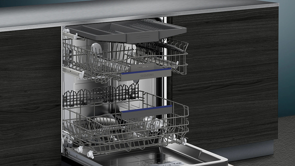 Эргономика внутреннего пространства продумана до мелочей: три уровня загрузки с третьим уровнем для столовых приборов — varioDrawer, переставляемый по высоте верхний короб rackMatic-3 с полным выдвижением облегчает размещение крупной посуды; короб vario обеспечивает гибкость конфигурации, складные направляющие для тарелок присутствуют в верхнем и нижнем уровнях (2/4), полочки для чашек расположены на двух уровнях (2/2). Самоочищающиеся фильтры упрощают уход, Machine Care помогает поддерживать агрегат в оптимальном состоянии.