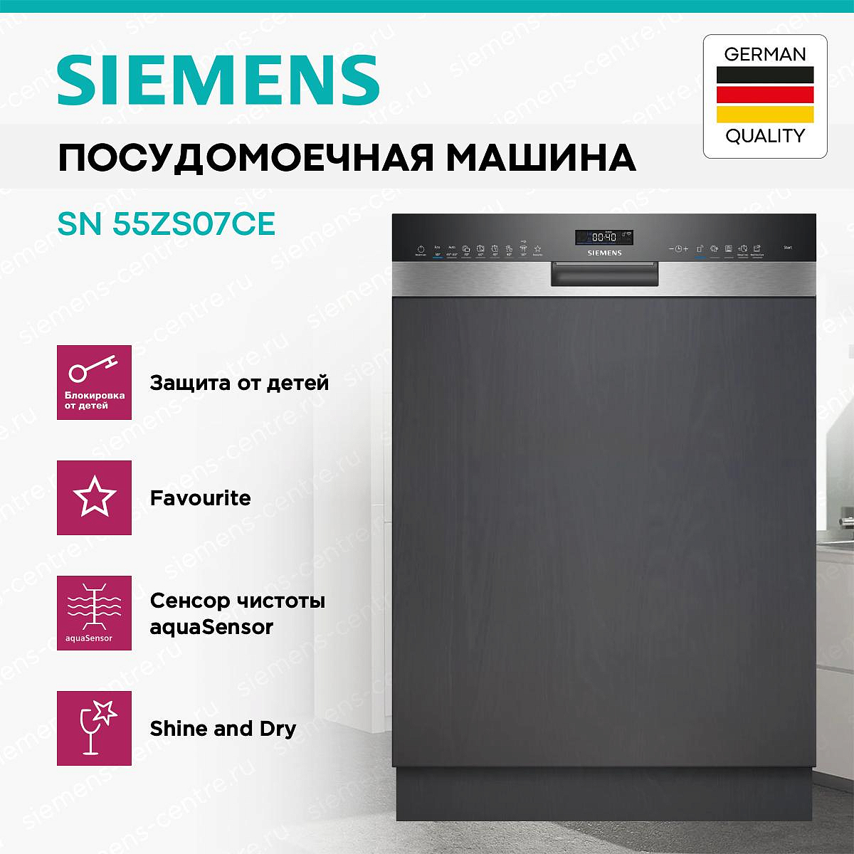 Встраиваемая посудомоечная машина Siemens SN 55ZS07CE — это высокотехнологичное устройство из серии iQ500, способное стать незаменимым помощником на вашей кухне. Стильный дизайн, выполненный в цвете нержавеющей стали, великолепно впишется в любой интерьер, а панель управления с цифровым дисплеем обеспечит удобство и легкость использования. Модель обладает вместимостью в 14 комплектов посуды, что позволяет справиться с большим количеством посуды за один цикл. Посудомоечная машина оснащена надежным двигателем iQdrive и электронным типом управления, что гарантирует надежность и долговечность устройства.