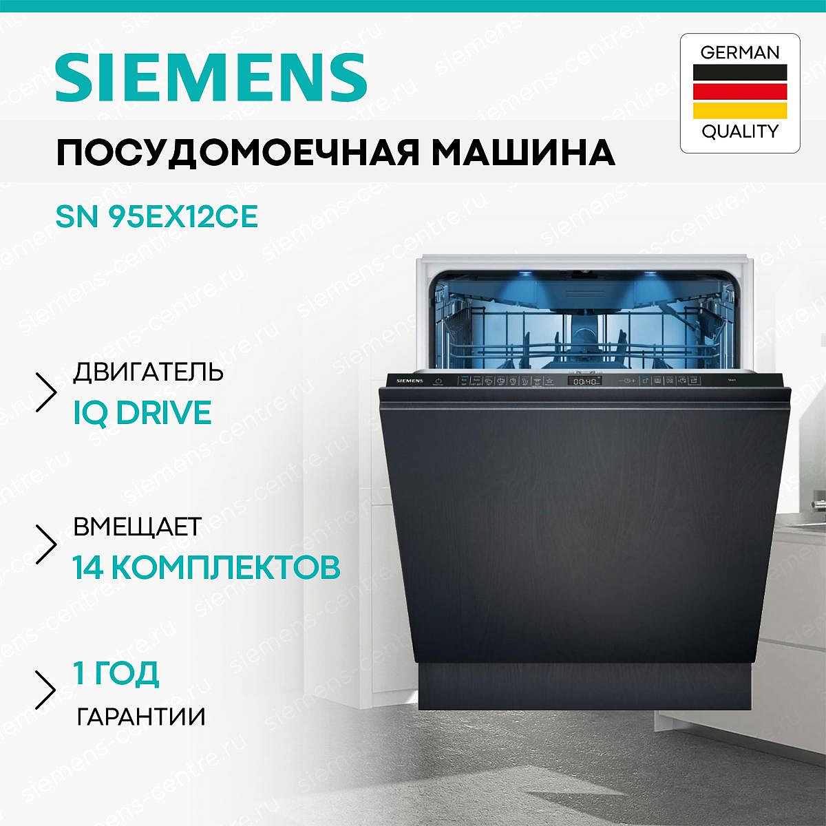 Встраиваемая посудомоечная машина Siemens SN 95EX12CE из серии iQ500 представляет собой идеальное сочетание инновационного дизайна и передовых технологий. Благодаря полновстраиваемой конструкции, она гармонично интегрируется в любой кухонный интерьер, обеспечивая единый стиль и максимальную функциональность. Машина имеет вместимость на 14 комплектов посуды, что делает её подходящей для больших семей или частых гостей. Элегантная сенсорная панель управления в черном цвете добавляет современности и удобства в использовании, позволяя легко выбирать из восьми программ мойки.