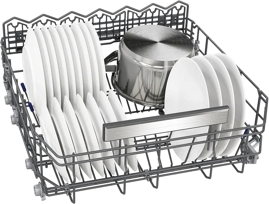 Набор программ включает 8 основных режимов с четырьмя температурными уровнями и пятью специальными функциями для любых ситуаций: автоматический режим 45–65°C подстраивается под степень загрязнения, деликатный режим бережно очищает тонкое стекло, Eco 50°C обеспечивает оптимальный баланс расхода ресурсов, ночной тихий цикл на 50°C снижает акустическую нагрузку, интенсивная программа 70°C справляется с сильными загрязнениями, ежедневная при 60°C подходит для регулярной мойки, есть интеллектуальные настройки Intelligent. Дополнительно доступны varioSpeedPlus для ускорения цикла, режим половинной загрузки, intensiveZone для усиленного мытья в нижней корзине и hygienePlus для повышения санитарной обработки.