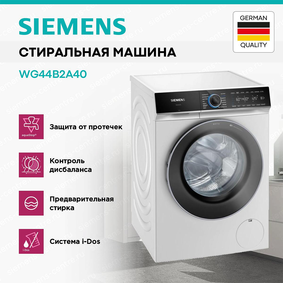 Стиральная машина Siemens WG44B2A40 воплощает в себе инновационные технологии и элегантный дизайн. Это устройство не только выполнит все необходимые функции, но и станет украшением вашего дома. Отличительная черта модели — это ее стильный внешний вид. Гладкие линии, современный дизайн и металлический цвет делают ее незаменимым элементом интерьера. Стиральная машина Siemens WG44B2A40 обладает множеством функций, которые сделают процесс стирки максимально удобным и эффективным. Основной особенностью является система iQdrive, которая обеспечивает непревзойденную эффективность и тихую работу.