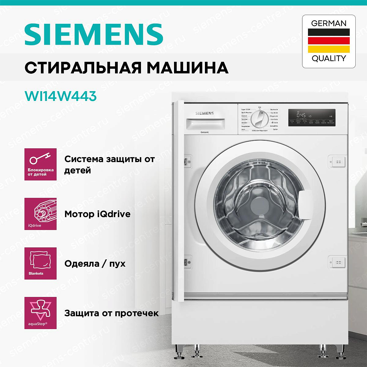 Стиральная машина Siemens WI14W443 оснащена опцией speedPerfect, которая поможет вам сэкономить драгоценное время. Просто установите желаемое время работы или используйте программы super15′ и super30′, которые обеспечат идеально чистое белье всего за 15 или 30 минут. Бесщеточный двигатель iQdrive износостойкий и долговечный. WaterPerfect Plus всегда обеспечивает идеальный результат при оптимальном расходе воды при каждом цикле стирки.