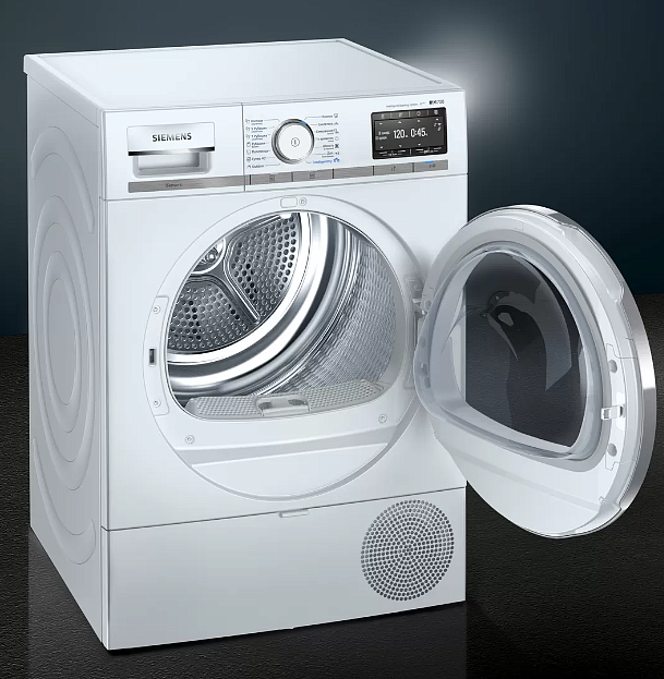 Сушильная машина SIEMENS WT47XEH10E это отдельно стоящая модель белого цвета с фронтальной загрузкой на 9 кг, которая придется по нраву абсолютно всем