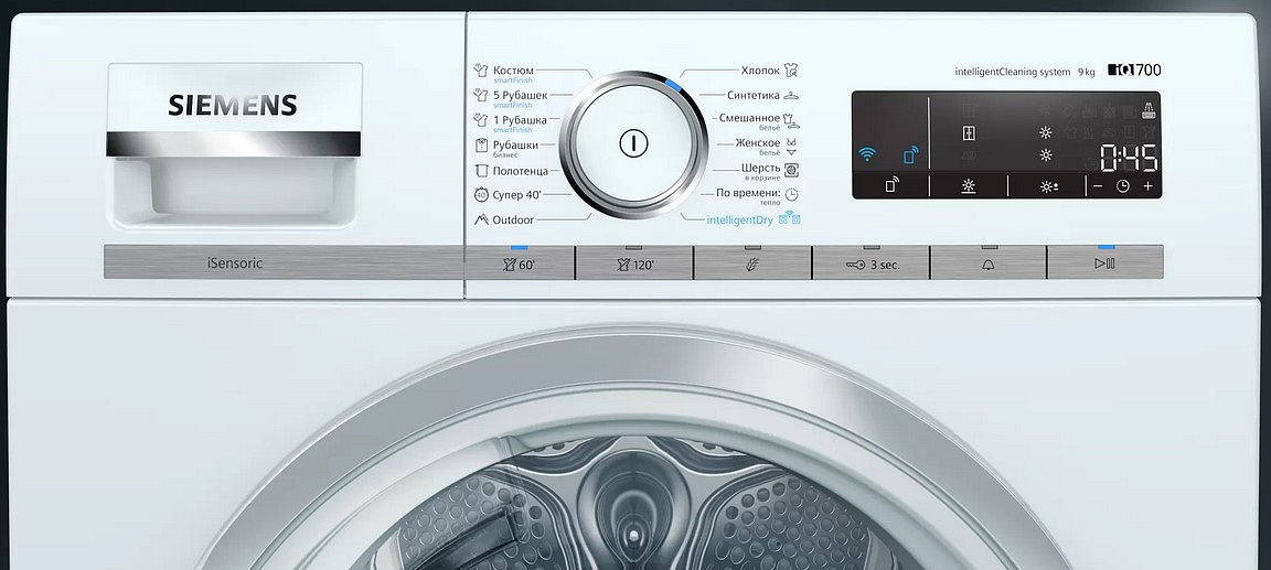 Сушильная машина SIEMENS WT47XKH1OE — это отдельно стоящая модель белого цвета с фронтальной загрузкой на 9 кг, которая придется по нраву абсолютно всем