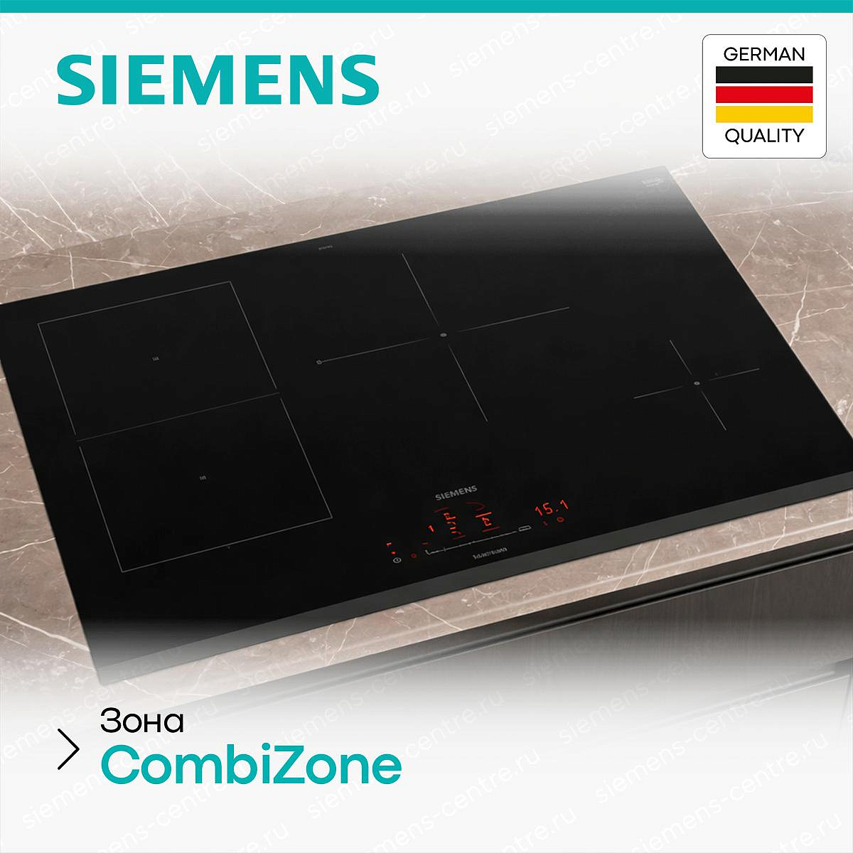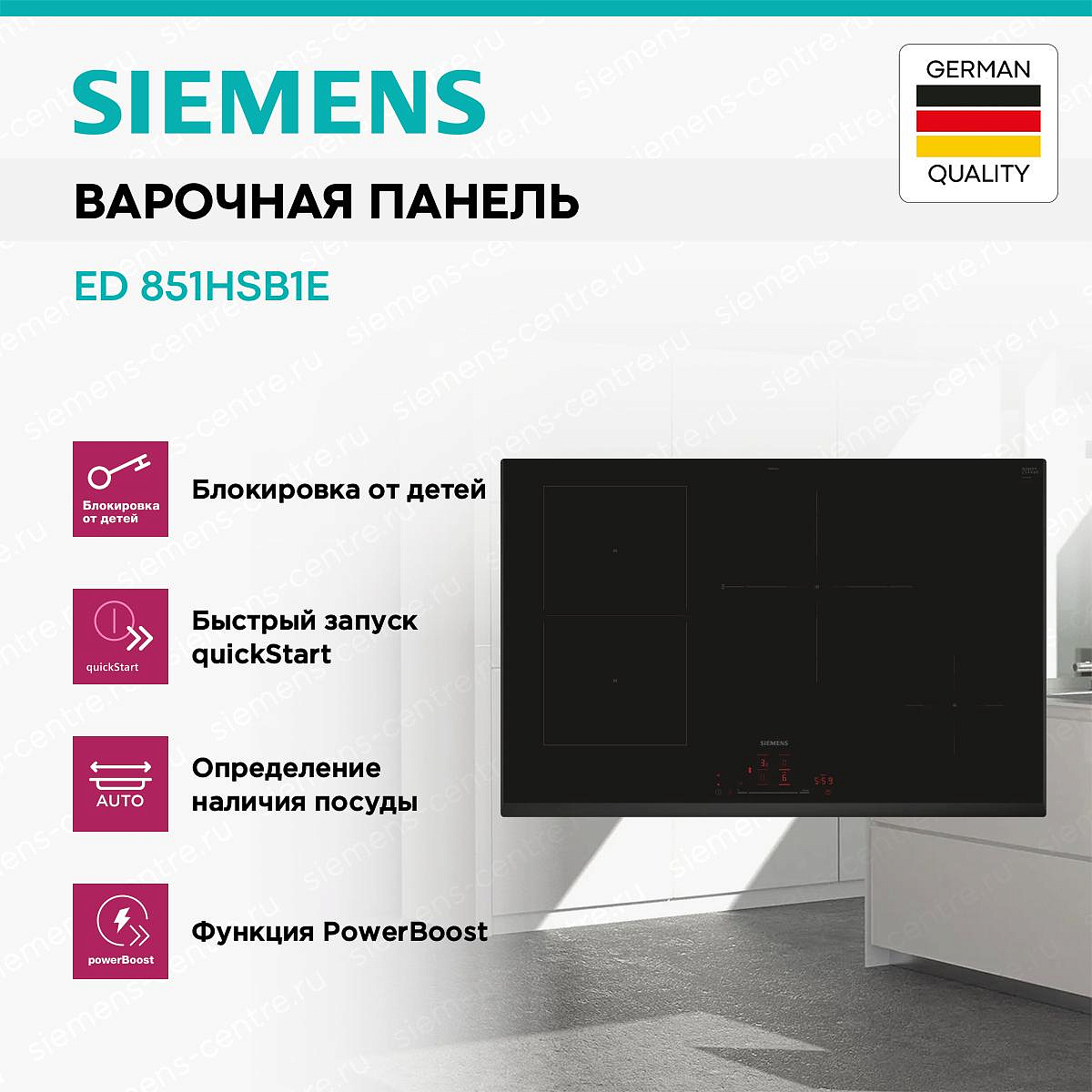 Индукционная варочная панель Siemens ED 851HSB1E — это современное решение для любителей кулинарного искусства, ценящих качество, функциональность и эстетику. Произведенная в Евросоюзе, эта модель входит в серию iQ500, что гарантирует высокий уровень надежности и эффективности работы. Дизайн панели выполнен в строгом и лаконичном стиле. Черный цвет поверхности, сделанной из стеклокерамики, придает модели элегантности и делает ее универсальным решением для любого интерьера. Скошенный фронт подчеркивает современный характер дизайна и добавляет панели изысканности. Управление панелью осуществляется электронно через сенсорные переключатели. Особенности управления touchSlider предоставляют возможность выбора одного из 17 уровней мощности, что позволяет точно настроить температуру для приготовления различных блюд.