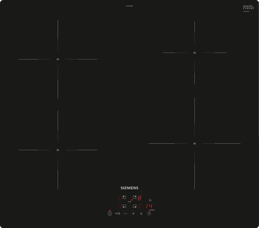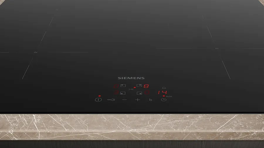 Индукционная варочная панель Siemens EU611BEB6E в черном цвете с безрамочным дизайном превращает рабочую зону в современное пространство, где лаконичность и функциональность сочетаются без компромиссов. Поверхность выполнена из прочной стеклокерамики, легко очищается и устойчива к механическим воздействиям, что делает эксплуатацию комфортной даже при интенсивной готовке.