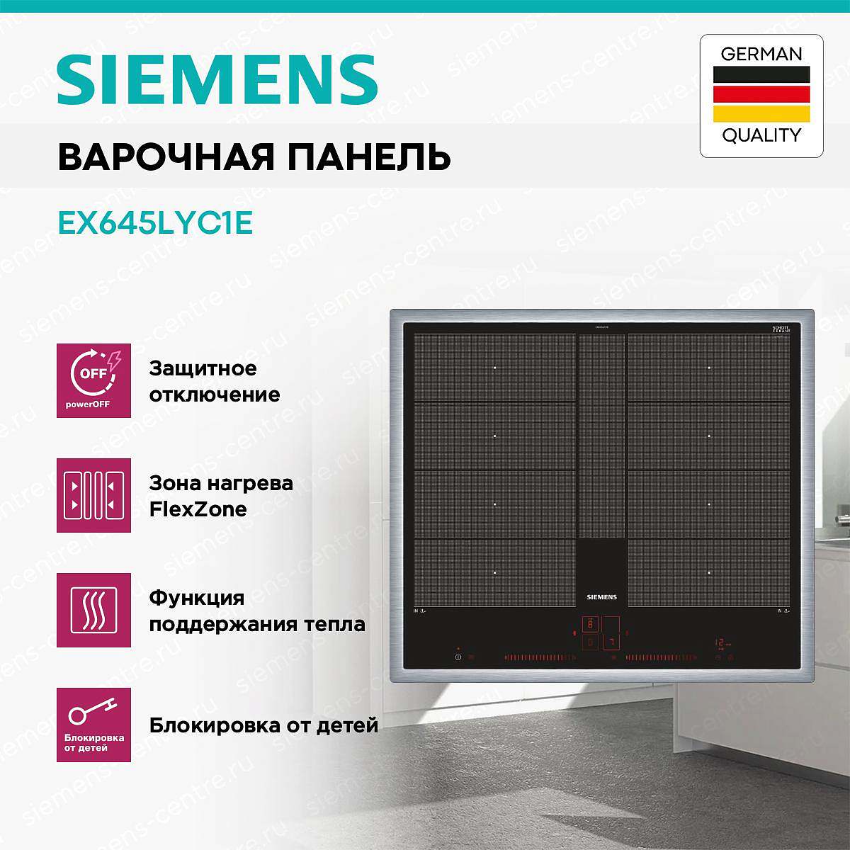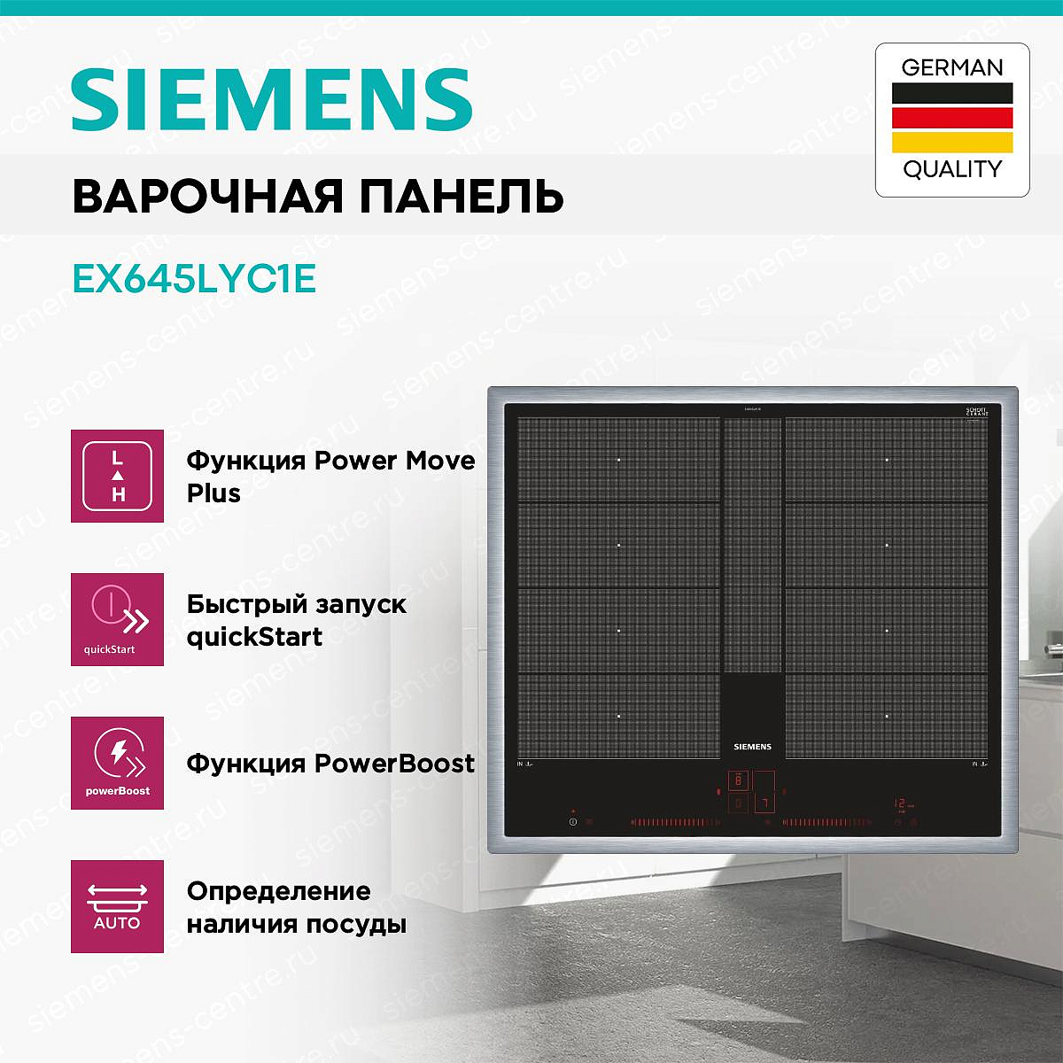 Индукционная варочная панель SIEMENS EX645LYC1E оснащена функцией VarioMotion при перемещении посуды устройство сохраняет настройки. PowerMove Plus технология создает три зоны нагрева, одну для приготовления на высоких температурах, а другие две для подогрева блюда. PowerBoost увеличивает мощность конфорки до 50% и вы можете готовить на 35 % быстрее.