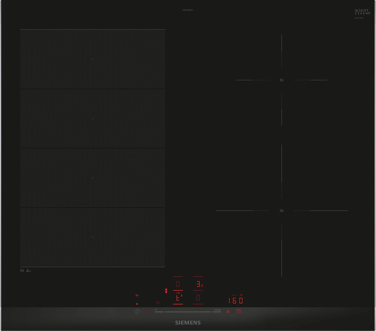 Индукционная варочная панель Siemens EX675HEC1E — это современное кулинарное оборудование, сочетающее в себе элегантный дизайн и передовые технологии. Элегантный черный цвет и гладкая поверхность из высококачественного стеклокерамики делают ее не только функциональной, но и стильной частью любой кухни. Особенности и функции данного прибора впечатляют своим разнообразием. Во-первых, наличие четырех зон нагрева позволяет готовить несколько блюд одновременно, экономя время и энергию. Каждая зона имеет индивидуальную регулировку мощности, что обеспечивает оптимальные условия для приготовления различных продуктов.