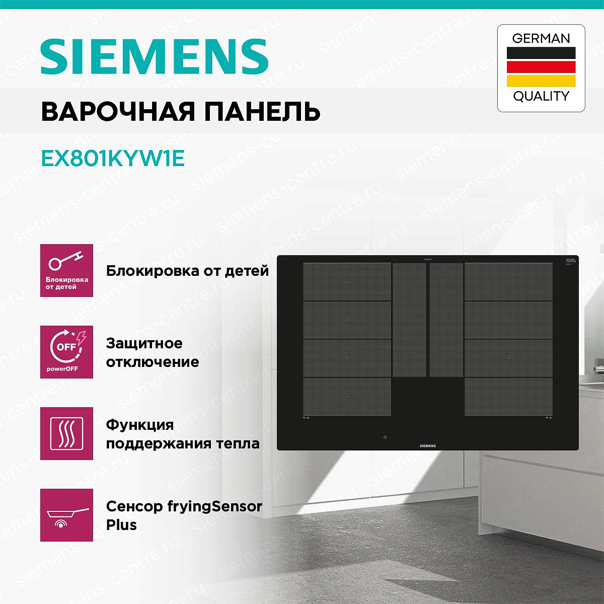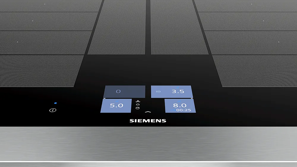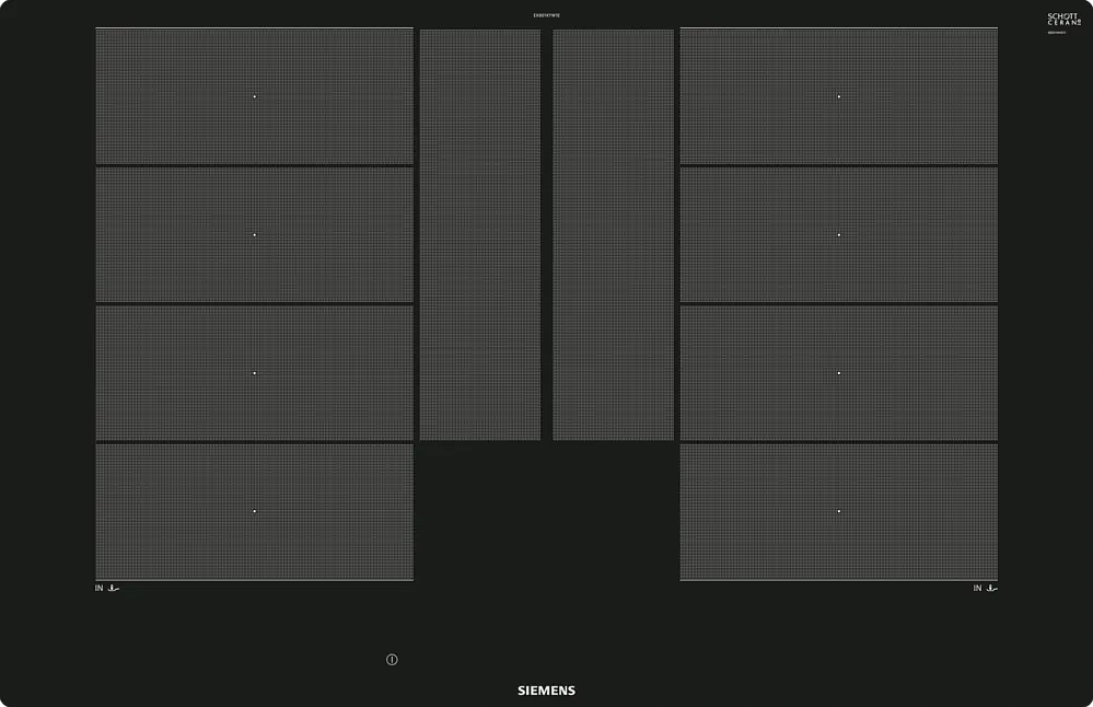 Индукционная варочная панель Siemens EX801KYW1E серии iQ700 сочетает лаконичный профиль и современные технологии, предлагая высокую функциональность в элегантном корпусе. Черная стеклокерамическая поверхность органично смотрится на любой кухонной столешнице, а рамка по периметру придаёт аккуратный завершённый вид и защищает края от механических воздействий. Невысокая высота панели и минимальные видимые элементы делают прибор визуально лёгким, при этом материал поверхности обеспечивает простое обслуживание: отполировать следы от брызг и пятен можно мягкой салфеткой и специальным составом для стеклокерамики.