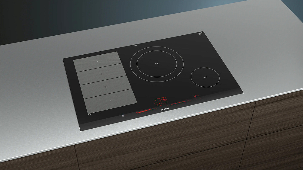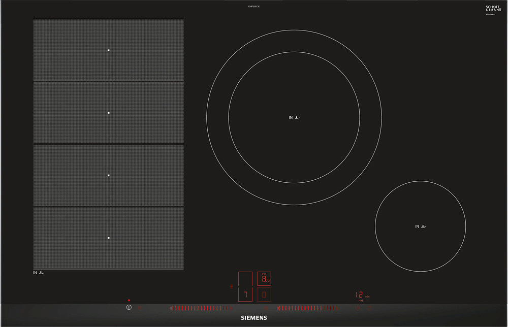 Индукционная варочная панель Siemens EX875LEC1E сочетает в себе современный минимализм и продуманные инженерные решения: чёрная стеклокерамическая поверхность создаёт строгий и изысканный акцент в интерьере любой кухни, а ровные контуры и низкий профиль (высота 5.1 см) облегчают интеграцию в столешницу с минимальной толщиной 1.6 см. Материал отличается гладкой текстурой и устойчивостью к механическим воздействиям при аккуратной эксплуатации, при этом уход остаётся простым — достаточно мягкой ткани и щадящего средства. Плавные края и чёрный оттенок делают прибор универсальным решением для разных стилевых направлений, а отсутствие выступающих элементов подчеркивает сдержанность дизайна.