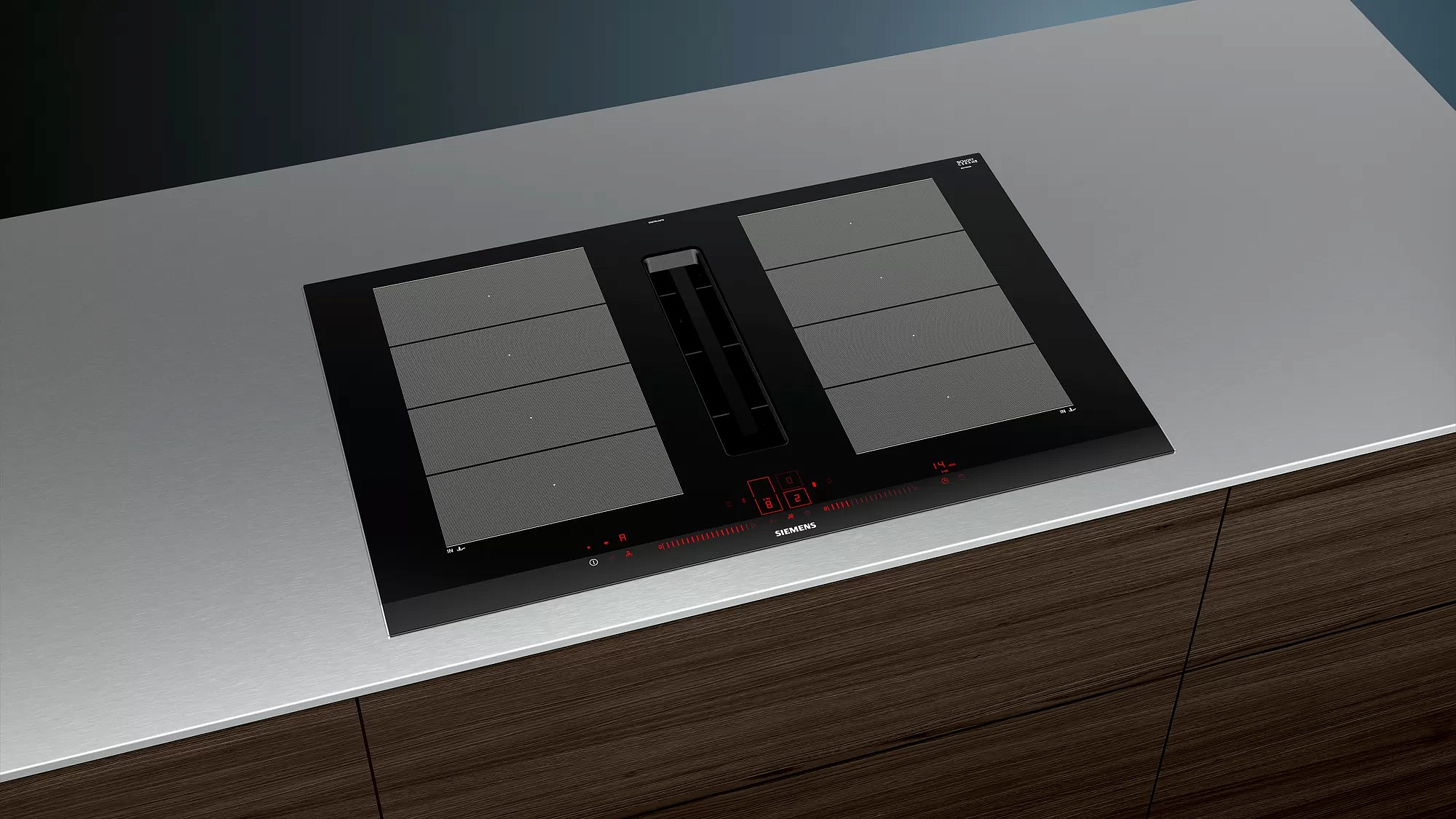 Индукционная варочная панель Siemens EX875LX67E отличается изящным дизайном и повышенной функциональностью. Сенсор жарения Frying Sensor обеспечивает идеальное поджаривание благодаря автоматическому контролю температуры. Интуитивное понятное управление Power Move Plus позволяет быстро подобрать зону нагрева, мощность и дополнительные функции. Безопасность эксплуатации обеспечивается благодаря индикаторам остаточного тепла для каждой зоны нагрева. К устройству интегрирована вытяжка 80 см.
