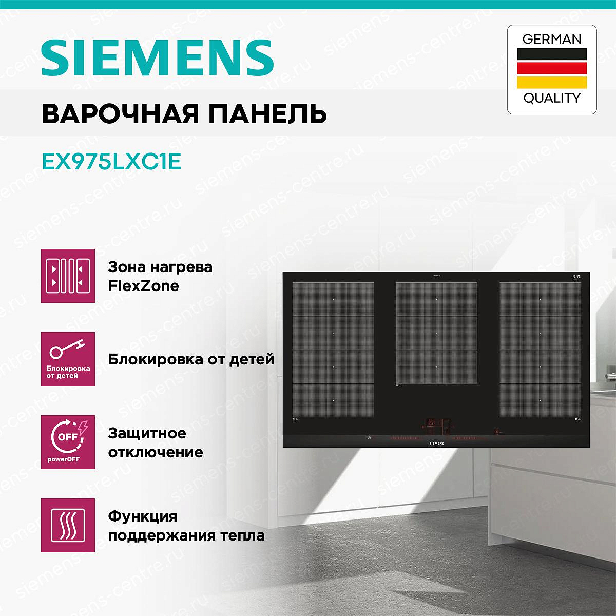Индукционная варочная панель Siemens EX975LXC1E отличается изящным дизайном и повышенной функциональностью. Сенсор жарения Frying Sensor обеспечивает идеальное поджаривание благодаря автоматическому контролю температуры. Интуитивное понятное управление Power Move Plus позволяет быстро подобрать зону нагрева, мощность и дополнительные функции. Безопасность эксплуатации обеспечивается благодаря индикаторам остаточного тепла для каждой зоны нагрева.