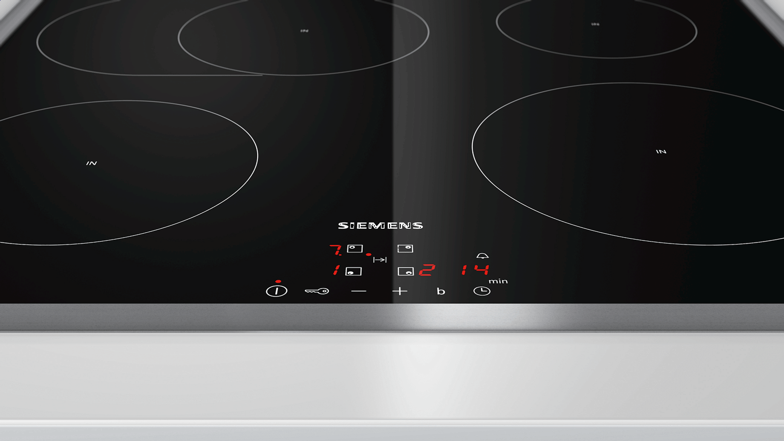 Варочная панель Siemens EH645BFB1E выполнена из стеклокерамики немецкого производства, что гарантирует долговечность использования. Рамка из нержавеющей стали подчеркивает современный дизайн модели и защищает столешницу в случае пролива жидкости. Функция quickStart автоматически определяет конфорку, на которой есть подходящая для индукции посуда. Пользователь может сразу же установить нужный уровень мощности и начать приготовление. Режим powerManagement ограничивает максимальную мощность прибора, что экономит электроэнергию и гарантирует безопасность эксплуатации в домах с ограниченным подключением к электросети.