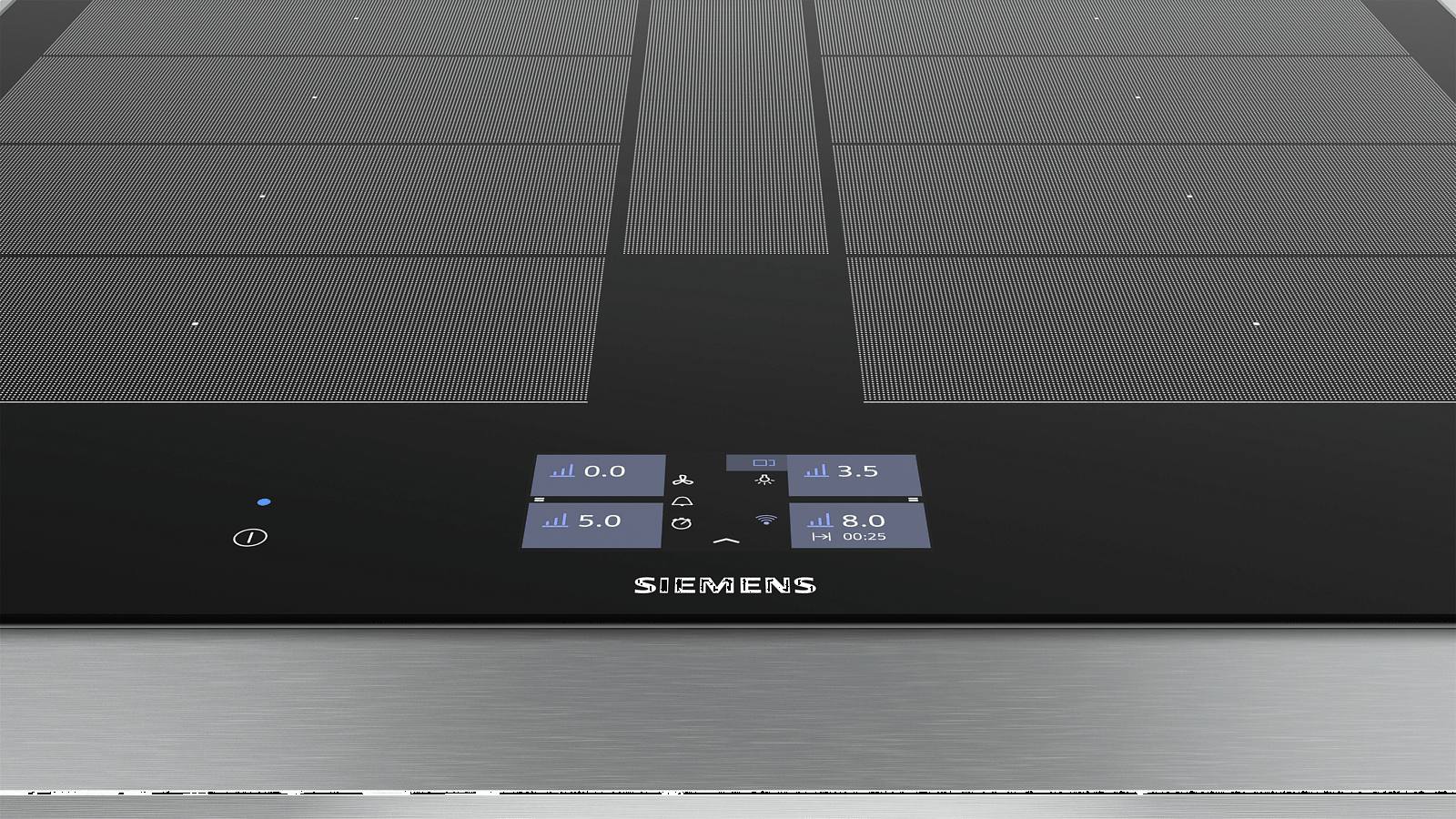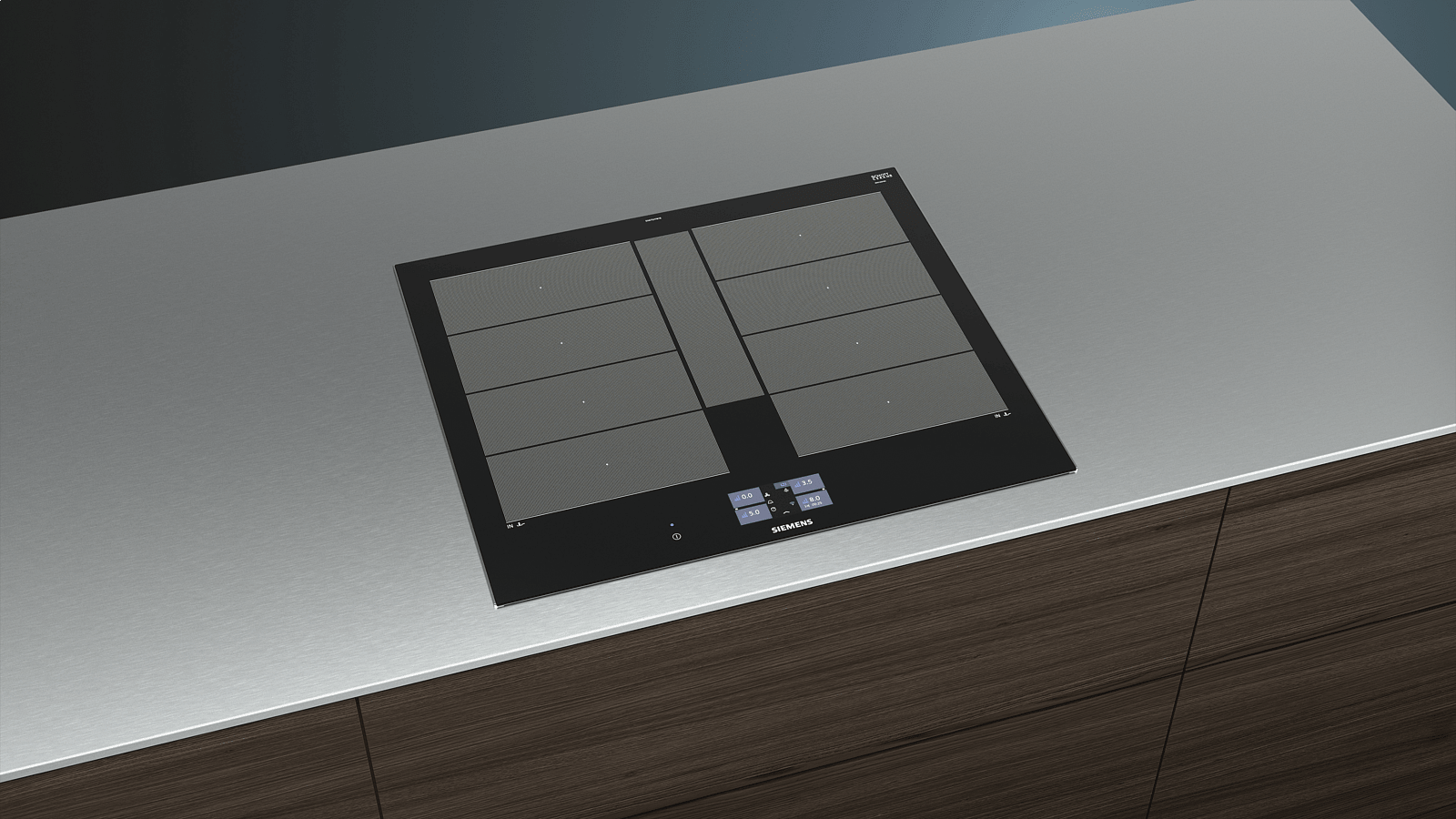 Прибор Сименс имеет 2 зоны нагрева «Flexinduction», которые позволяют готовить в посуде любого размера. При активации этой функции области готовки создают увеличенную площадь нагрева, которая варьируется в зависимости от посуды.