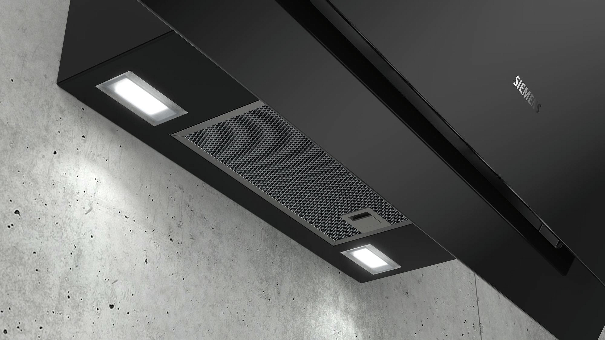 Наклонная вытяжка Siemens LC87KHM60 с двумя режимами работы: отвод и циркуляция. Второй доступен при установке специального комплекта CleanAir. Металлический жироулавливающий фильтр можно мыть в посудомоечной машине, благодаря чему упрощается эксплуатация прибора. Максимальная производительность на интенсивной ступени достигает 680 м3/ч. Рабочая поверхность освещается экономичными светодиодными лампами мощностью 1,5 Вт каждая.