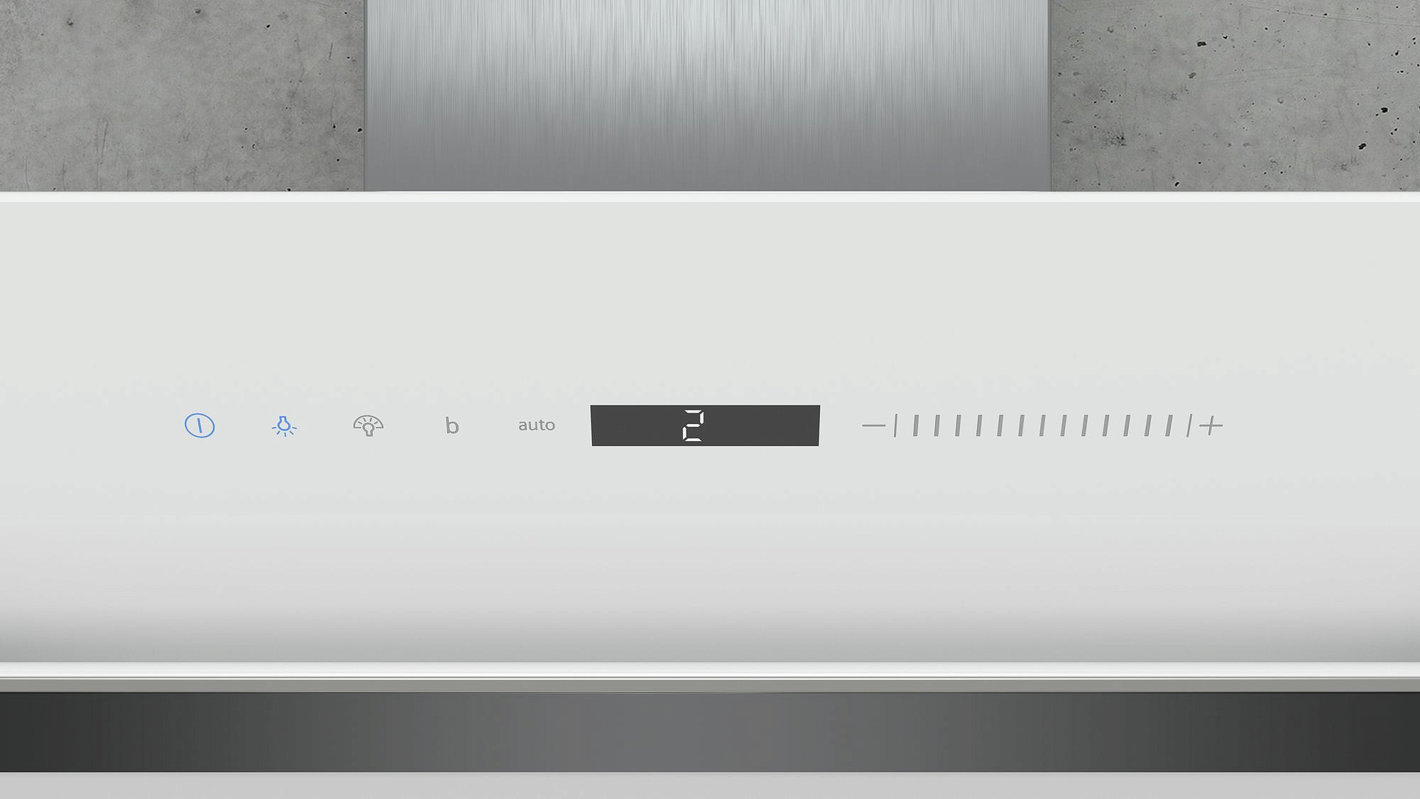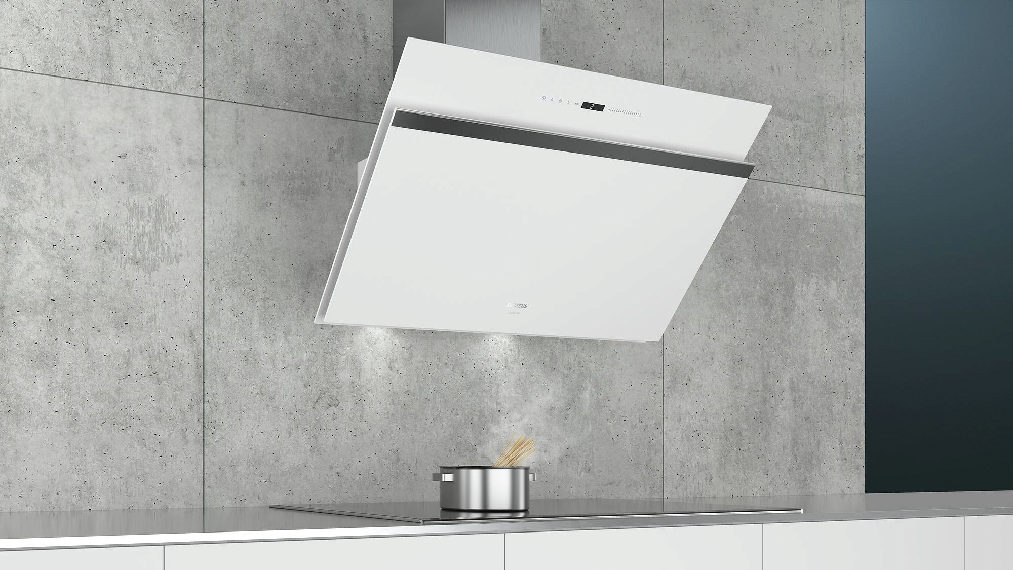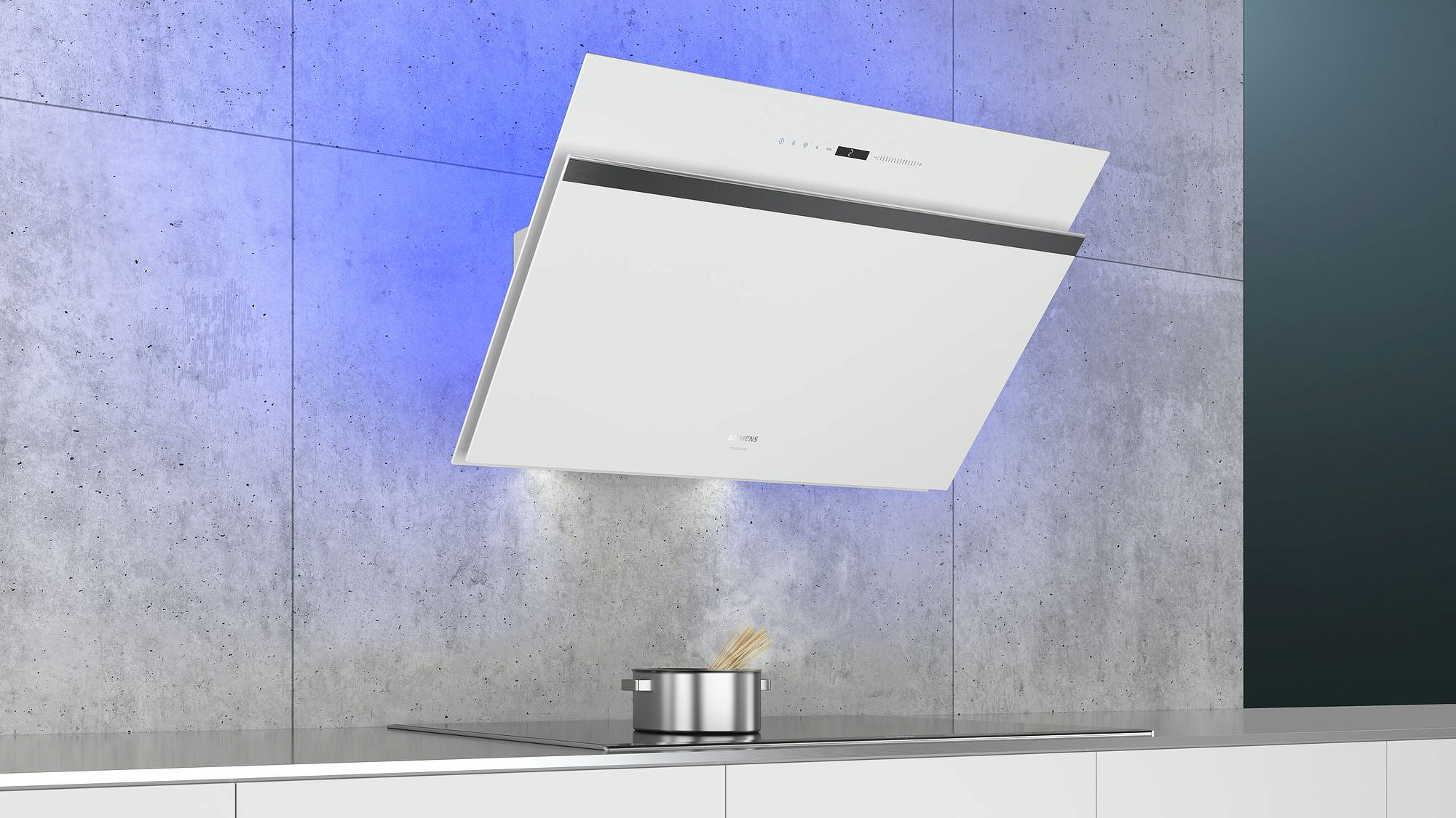 Наклонная вытяжка Siemens LC91KWW20 настенного монтажа идеально сочетает современный дизайн и передовые технологии. Сенсорная панель слайдерного типа позволяет управлять работой прибора легким движением руки. Функция emotionLight Pro дает возможность выбрать цвет подсветки вытяжки, подходящий к интерьеру кухни. СlimateControlSensor автоматически выберет уровень производительности в зависимости от интенсивности пара при готовке.