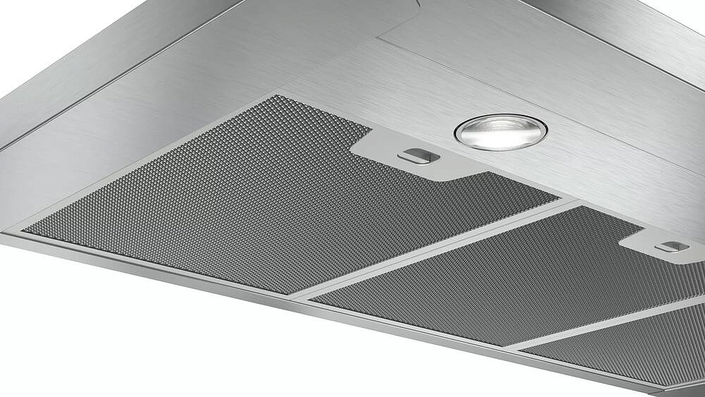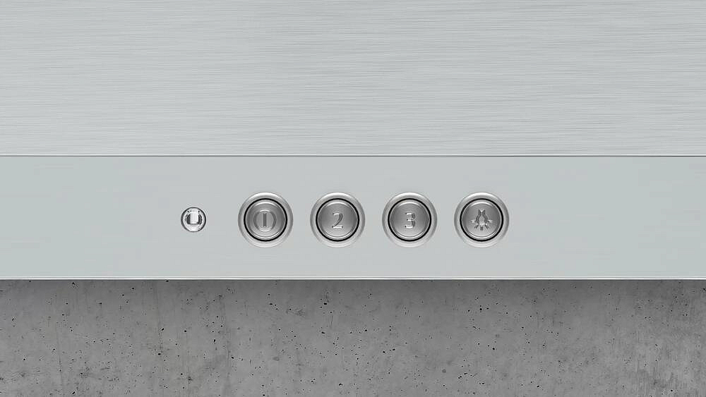 Вытяжка SIEMENS LC94PCC50M способна работать в режиме циркуляции и отвода, для первого вам потребуется угольный фильтр. Светодиодное освещение состоит из двух лам и отлично освещает рабочее место. Управление осуществляется при помощи кнопок, вы можете выбрать 3 скорости работы устройства и включить свет.