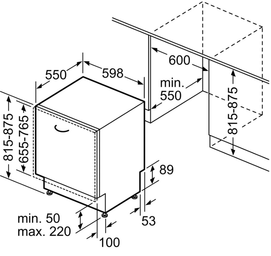 Схема встраивания для посудомоечной машины Siemens SN 95EX12CE