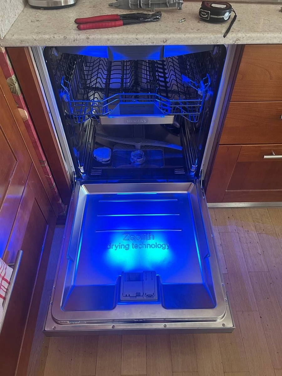 Эта встраиваемая стиральная машина Siemens стала настоящим открытием для моей кухни — она идеально вписалась в фасад, сохранив гармонию интерьера, а белоснежная панель управления выглядит стильно и ухоженно. Особенно ценю функцию speedPerfect: раньше стирка хлопка занимала почти два часа, а теперь справляюсь за 40 минут без ущерба для качества — бельё выходит чистым, мягким, без разводов. Технология AntiVibration работает безупречно: даже при отжиме на 1400 об/мин машинка стоит как вкопанная, без дребезжания и «танцев» по полу — это спасение для квартиры с тонкими перекрытиями. Отдельный восторг — ночная программа: запускаю стирку после укладывания детей, а утром забираю сухое бельё, не побеспокоив никого шумом. А ещё обожаю луч timeLight на полу — такой простой, но гениальный штрих: в темноте сразу вижу, что стирка завершена, не нужно подходить и всматриваться в дисплей.